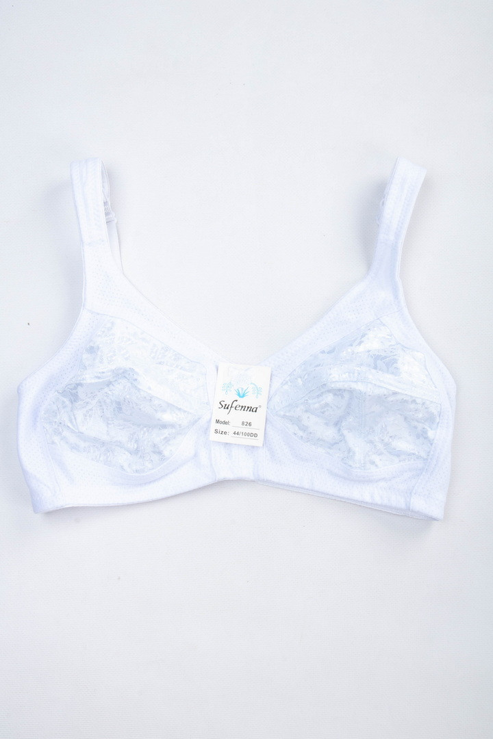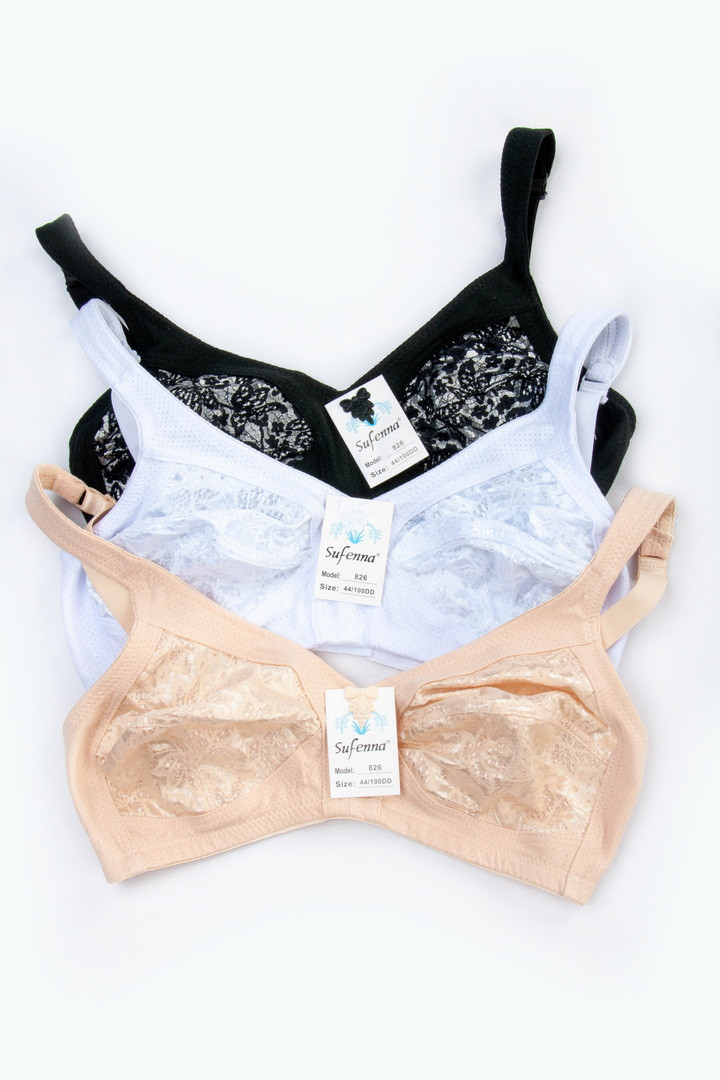 Бюстгальтер з м'якими чашками без поролону і кісточок, створений для комфорту і легкості. Широкі незнімні бретелі з регулюванням по довжині, на спинці класична застібка - 3 гачки/3 рівні подовження. Виконаний з натуральної бавовни з перфорацією і прикрашений витонченим квітковим мереживом. Всередині чашок м'яка бавовняна підкладка для максимального комфорту. На поясі вертикальні кісточки.