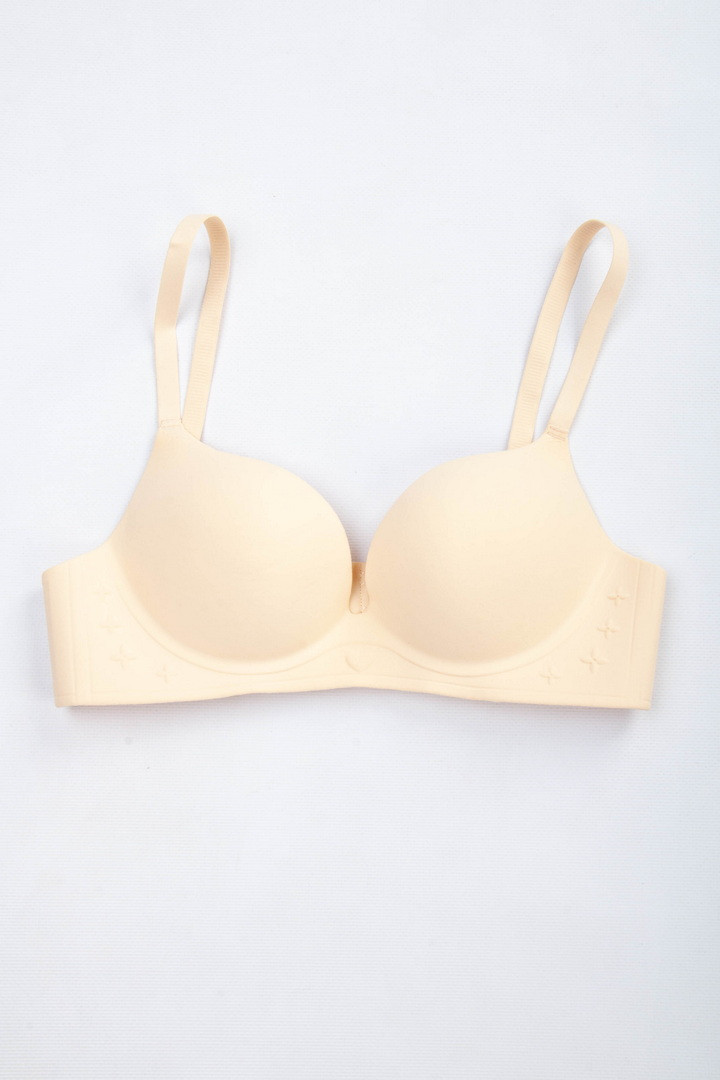Безшовні бюстгальтер з формовані, поролонові чашки і ефект push-up. Забезпечує природну підтримку, додає об'єм і піднімає груди завдяки вбудованому пуш-ап ефекту. Безшовний дизайн робить бюстгальтер непомітним під одягом, ідеально підходить для повсякденного носіння. Легкий та зручний, він дарує відчуття свободи протягом усього дня.