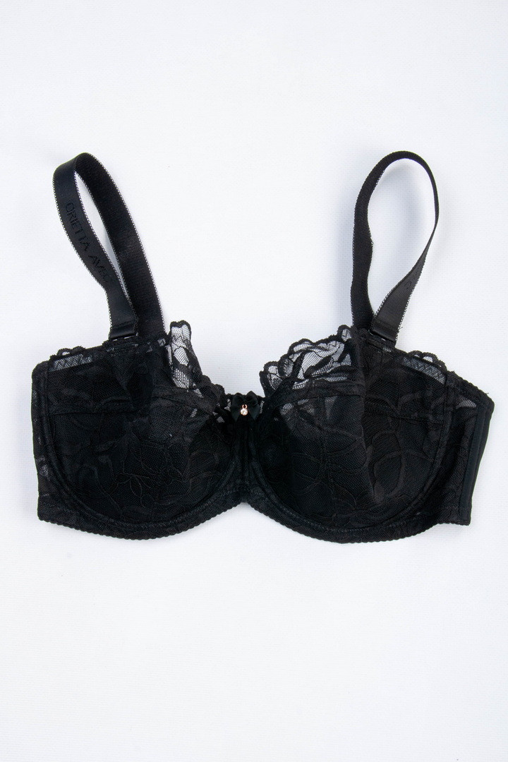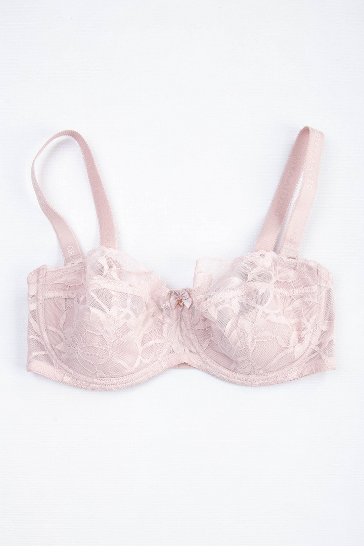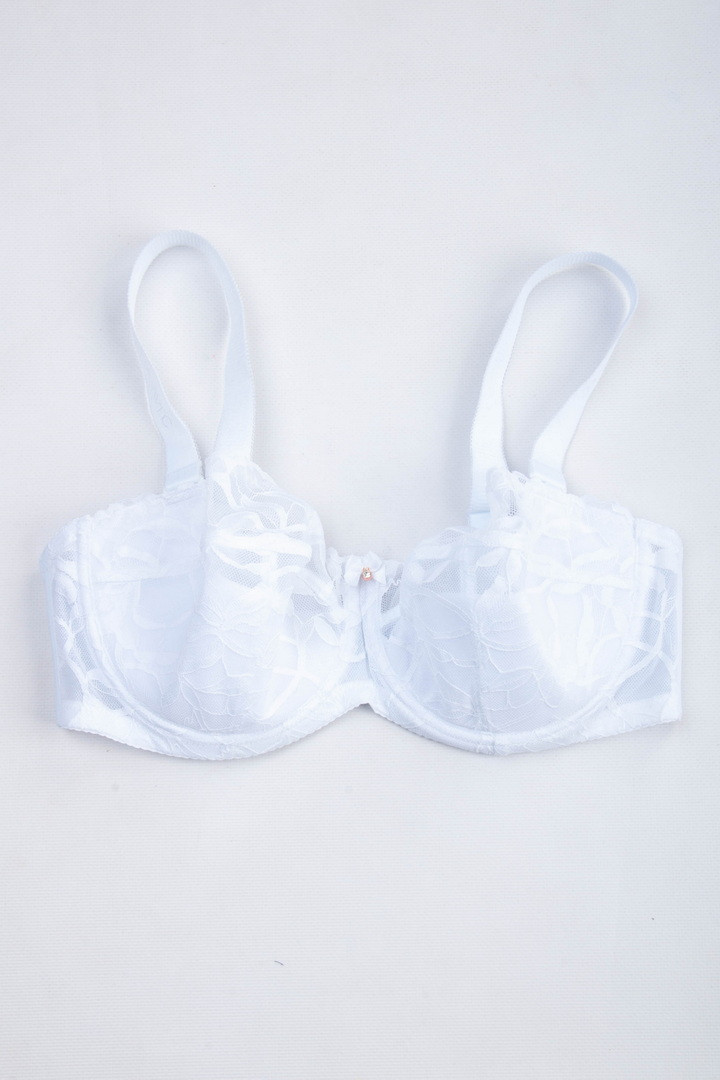 Ажурний бюстгальтер анжеліка без поролону на кісточці, верхи чашки силіконова стрічка, бретель – знімна, регулюється. Застібка 2 гачки на 4 позиції.