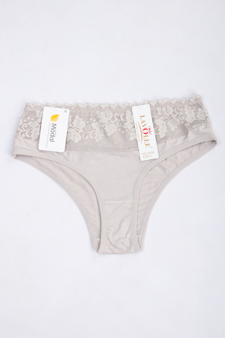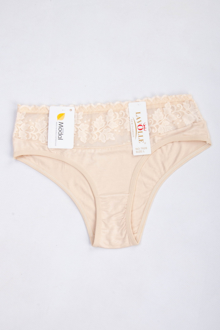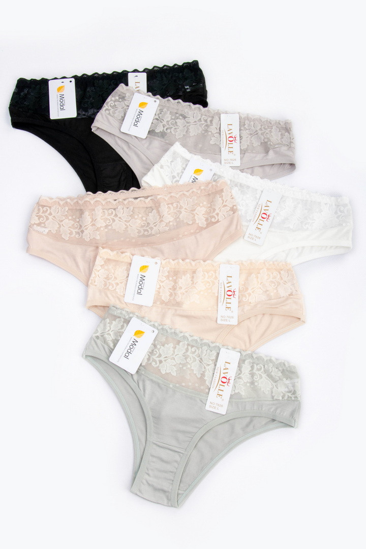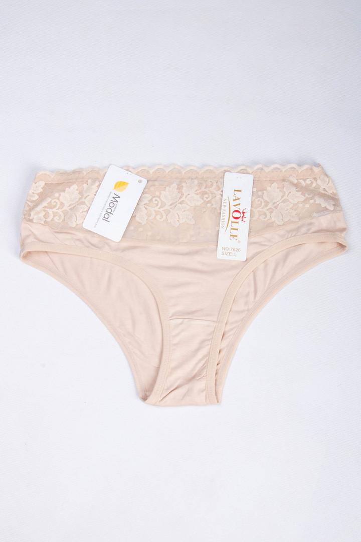 Півкружні труси на підвищеній посадці. Виготовлені із повністю натурального матеріалу у поєднанні з ажуром. Завдяки продуманому крою та поєднанню матеріалів, трусики не тільки виглядають розкішно, але й ідеально сідають по фігурі, підкреслюючи її переваги. Завищена посадка – підкреслює талію, а тонка еластична гумка – забезпечує комфортну посадку без здавлювання. Виконані з комбінації двох матеріалів: зверху квіткове мереживо із мікросітки, що створює легкий ефект прозорості, знизу приємний натуральний матеріал. З ластовицею з натуральної бавовни.