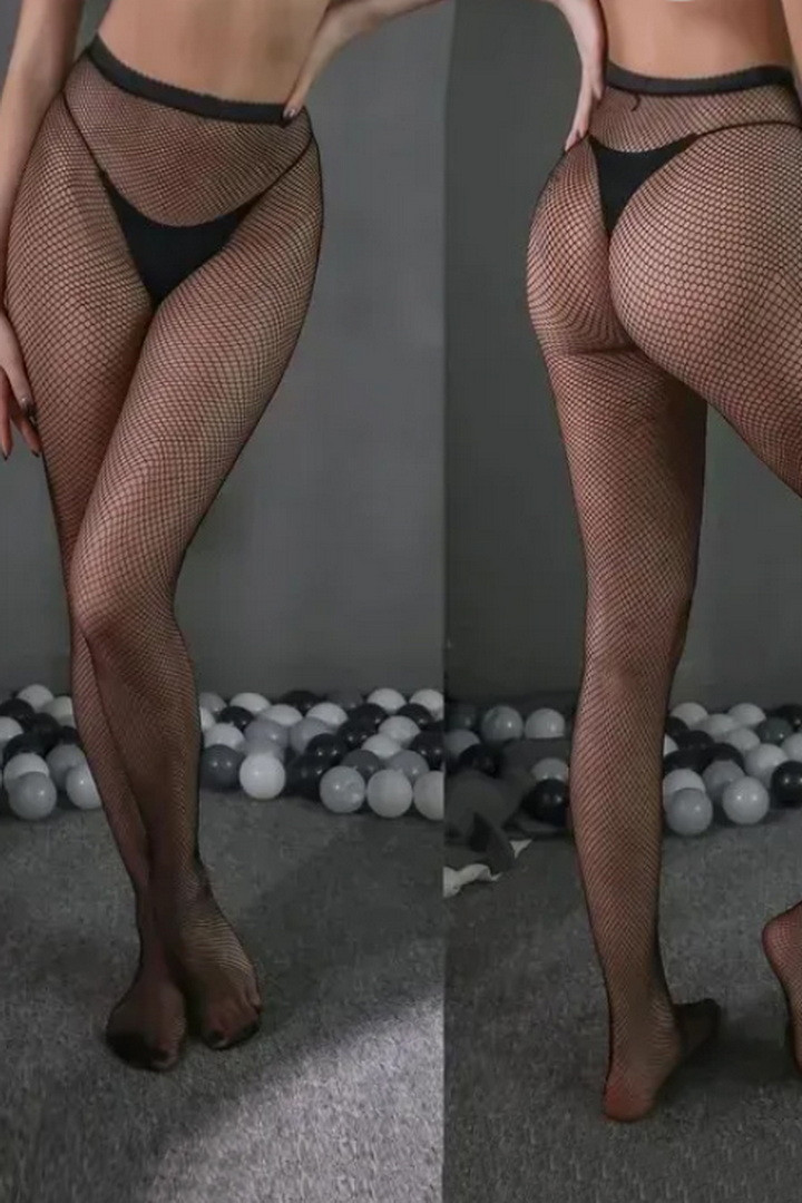 Елегантні колготки з імітацією панчох – сміливий та спокусливий аксесуар, що підкреслює граціозність та жіночність. Виконані з еластичної сітки з геометричним принтом. На талії пояс із тонкими лямками, що з'єднують панчохи, залишаючи стегна відкритими. Особливість моделі – відкритий доступ, що додає пікантності та спокуси.