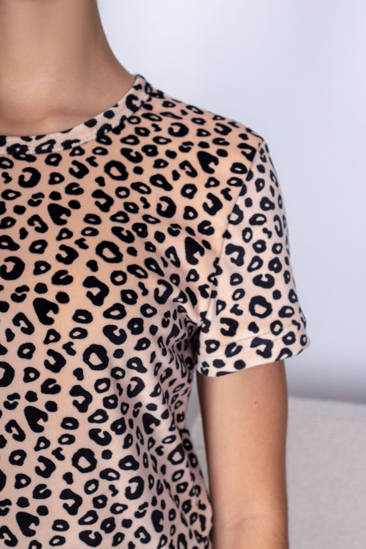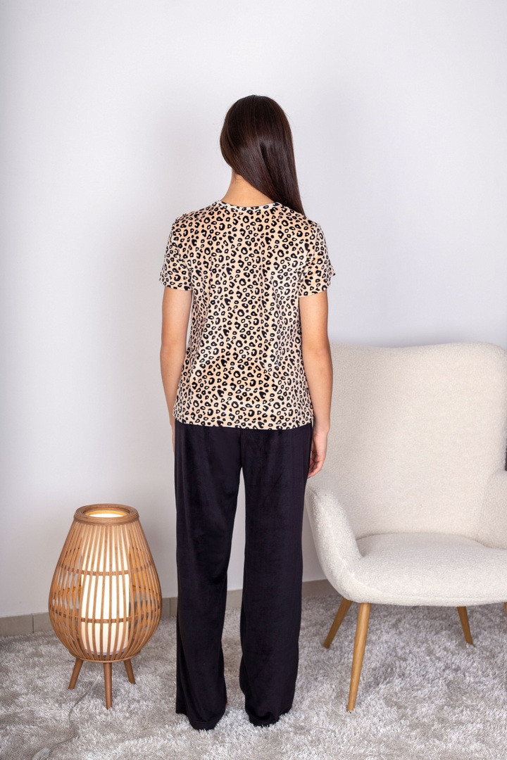 Жіночий комплект із м’якого велюру створений для максимального комфорту та затишку. Набір складається з футболки та штанів, виконаних із приємного на дотик, ніжного велюрового полотна, яке забезпечує комфортну температуру тіла та приємні тактильні відчуття. Футболка має класичний вільний крій із коротким рукавом та круглим вирізом горловини. Матеріал красиво лягає по фігурі, який додає моделі ніжності та жіночності. Штани прямого крою забезпечують повну свободу рухів. Еластичний пояс м’яко фіксується на талії, не тисне та дарує відчуття легкості під час відпочинку чи сну. Полотно гарно тягнеться, не деформується і довго зберігає первинну м’якість та яскравість. Такий велюровий комплект стане ідеальним вибором для домашнього відпочинку, вечірніх ритуалів, сну або спокійних вихідних. Він поєднує стильний вигляд, м’якість і практичність, роблячи щоденні моменти комфортнішими.