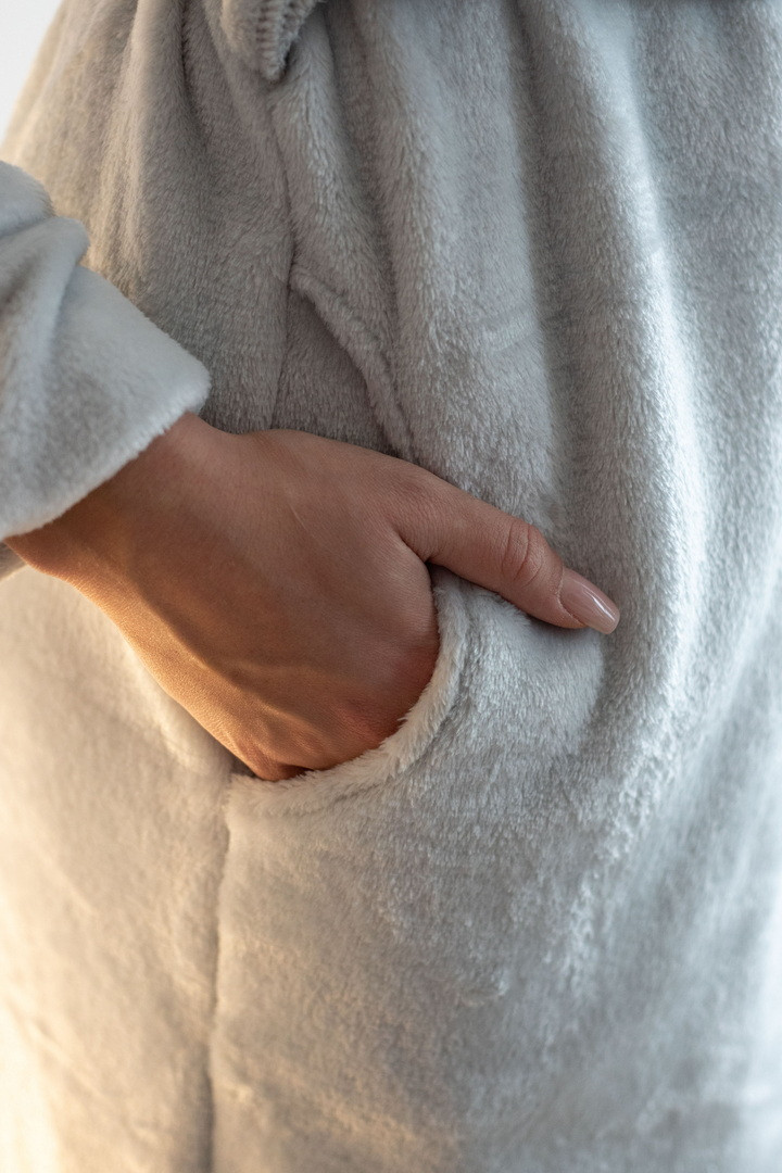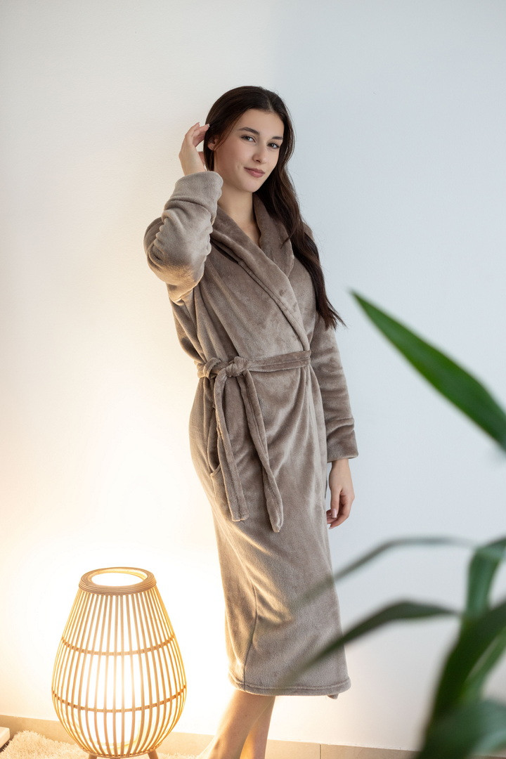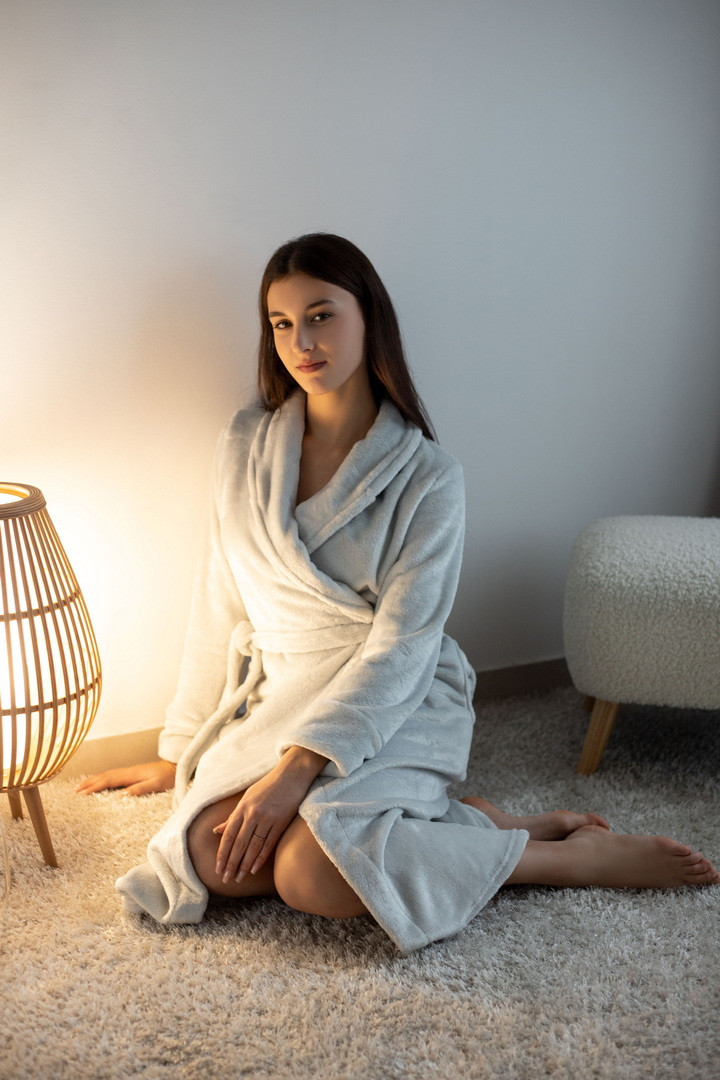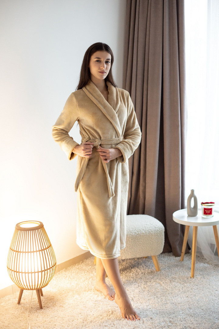 Жіночий махровий халат — це ідеальний вибір для домашнього комфорту та затишку. Виготовлений із приємної на дотик, м’якої та об’ємної махрової тканини, він забезпечує чудове поглинання вологи та дарує відчуття тепла після ванни чи душу. Модель має зручний прямий крій, довгі рукава та практичний пояс, який дозволяє легко регулювати посадку по фігурі. Комір створює додатковий комфорт, гарний вид та захист. По боках розміщені місткі кишені для необхідних дрібниць. Такий халат стане незамінним елементом домашнього гардероба, поєднуючи функціональність, тепло та естетичний вигляд.