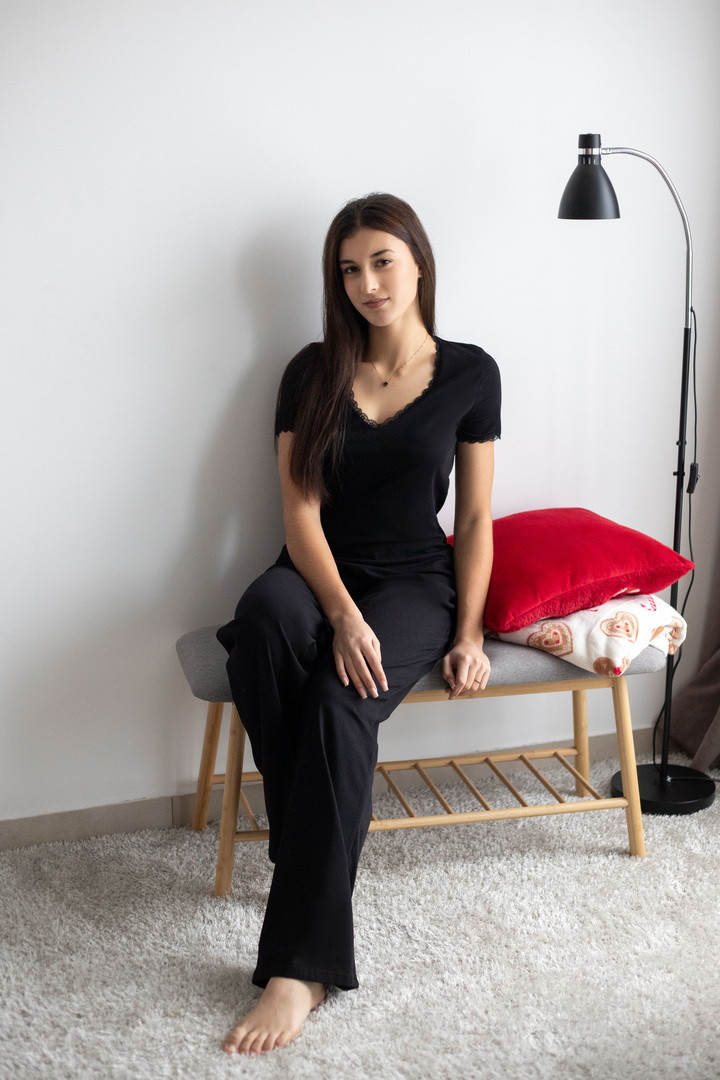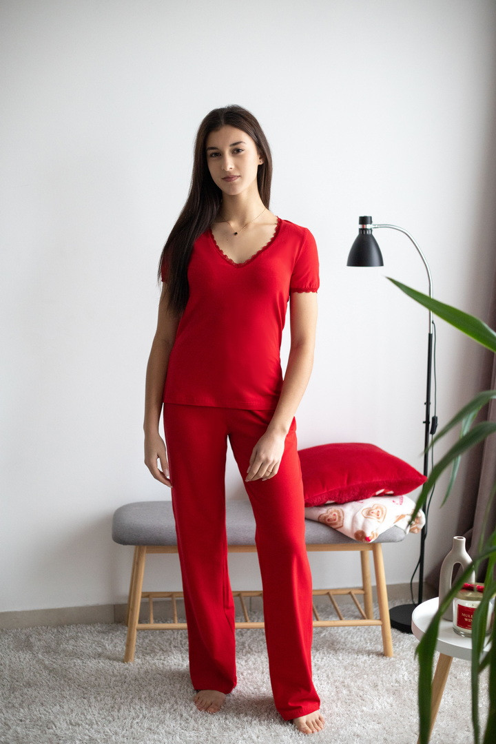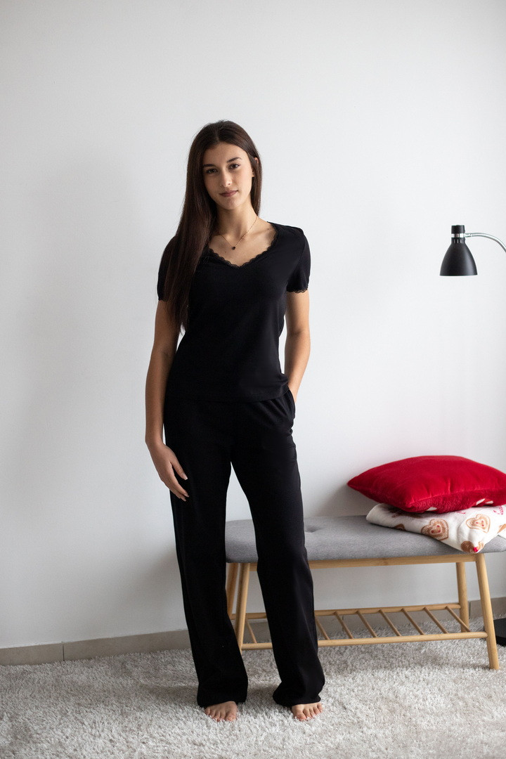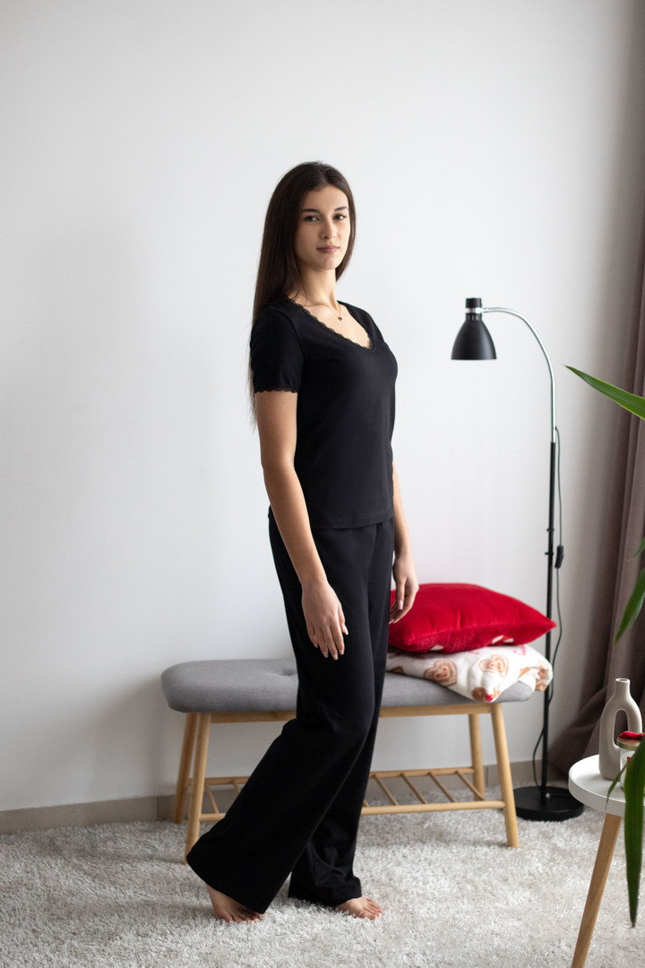 Жіночий комплект зі стрейч-куліру — це універсальний та комфортний набір, який поєднує легкість, м’якість і високу еластичність. До комплекту входять футболка прямого силуету та штани вільного крою. Футболка має акуратний круглий виріз, короткий рукав і плавно облягає фігуру. Штани оснащені еластичним поясом, що м’яко фіксується на талії, та прямими штанинами, які забезпечують зручність упродовж усього дня. Стрейч-кулір відзначається чудовою повітропроникністю до тіла та еластичністю, завдяки чому комплект ідеально підходить для дому, відпочинку або легкої активності. Матеріал добре тримає форму, не розтягується та не втрачає вигляду після прання. Це практичний і стильний варіант для жінок, які цінують комфорт і простоту.