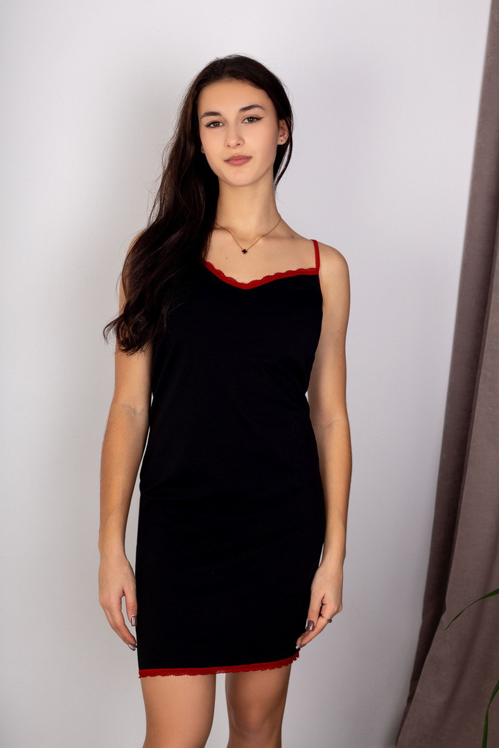 Жіноча сорочка із стрейч-куліру на бретельках — це легкий, ніжний та комфортний варіант для щоденного сну та відпочинку. Виготовлена з еластичного, приємного до тіла трикотажу, вона забезпечує ідеальну посадку. Тканина дихає, швидко відводить вологу та дарує відчуття прохолоди й комфорту впродовж усієї ночі. Сорочка має акуратний силует, м’яко підкреслює жіночні лінії, а тонкі бретельки додають виробу витонченості та легкості. Завдяки універсальному дизайну вона підходить для будь-якої пори року, особливо для теплого сезону, коли хочеться максимальної свободи та легкості. Це ідеальний вибір для жінок, які цінують якість, комфорт і ніжний мінімалістичний стиль у домашньому одязі.