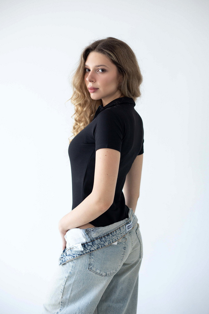 Параметри моделі: обхват грудей 83, талія 71, стегна 100, зріст 170 см. Розмір одягу 42-46.