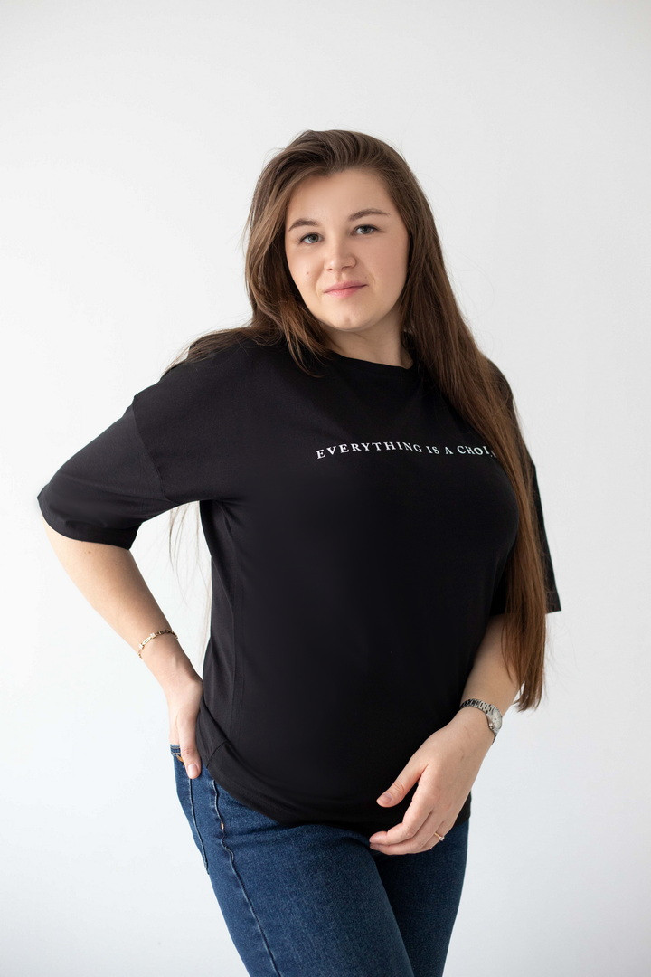 Параметри моделі: обхват грудей 108, талія 90, стегна 112, зріст 170 см. Розмір одягу L.
