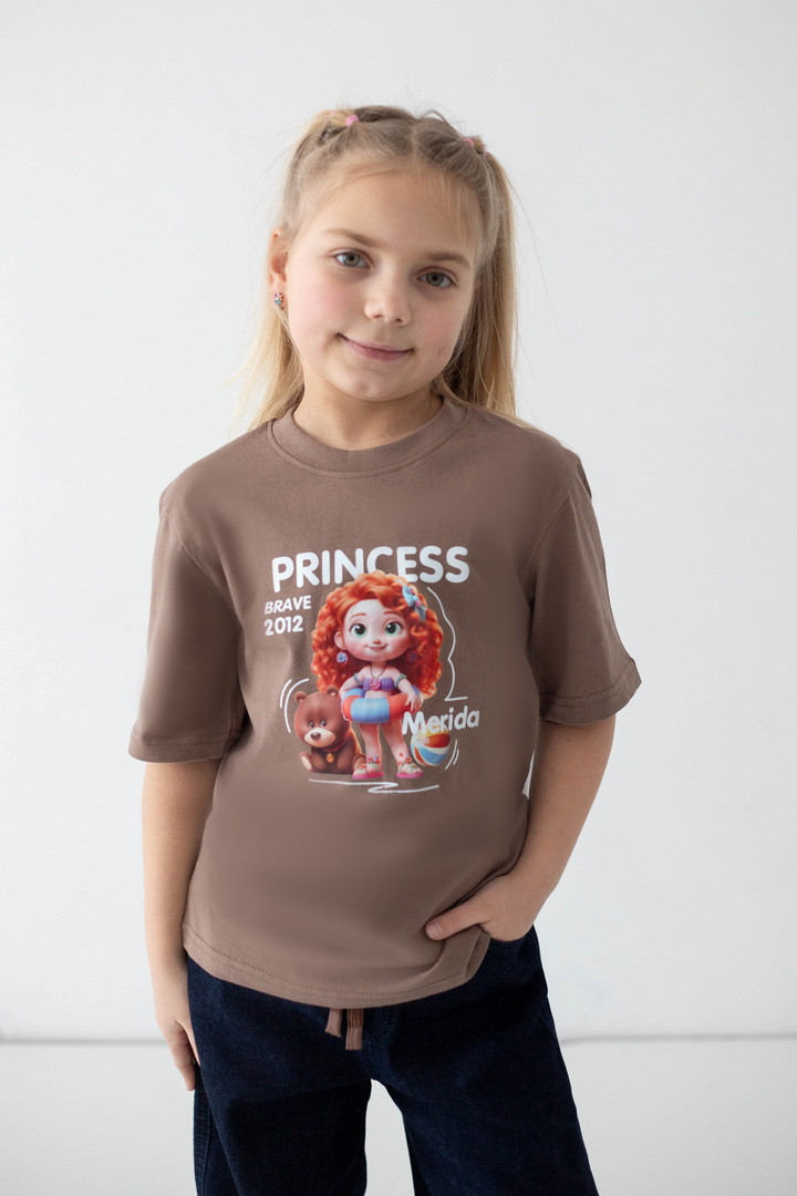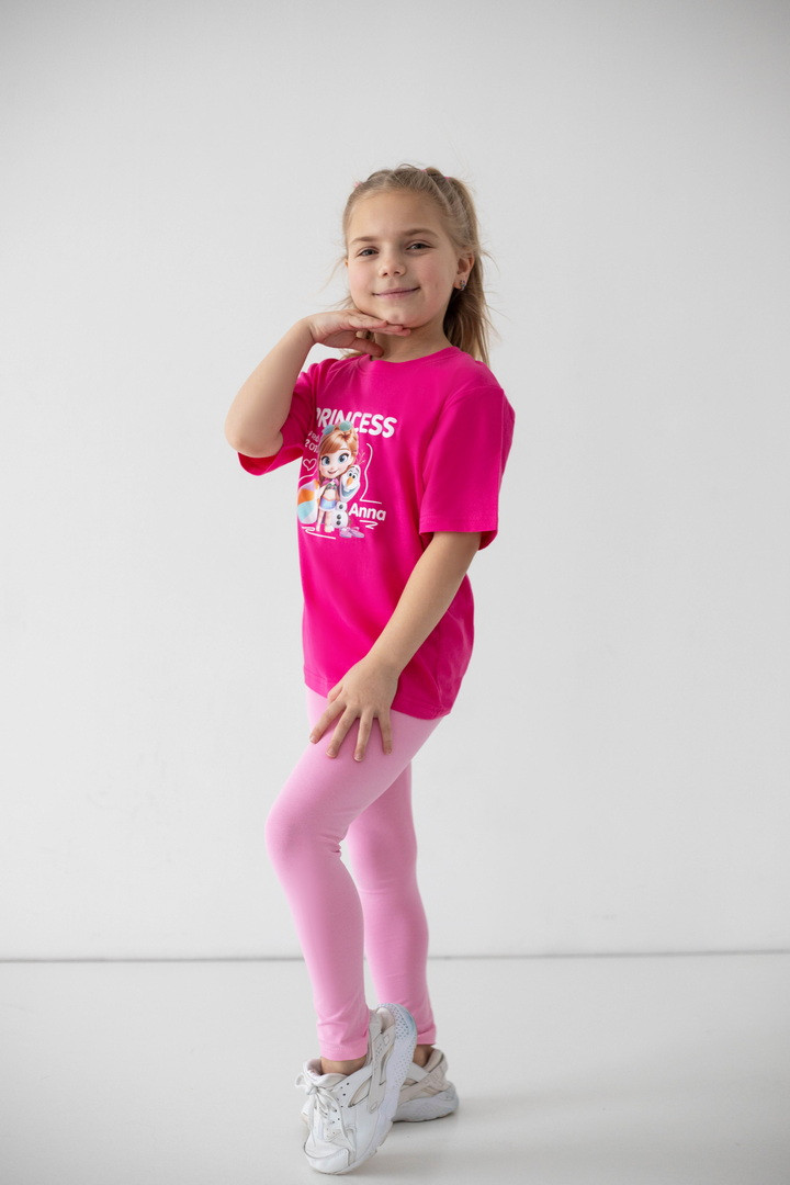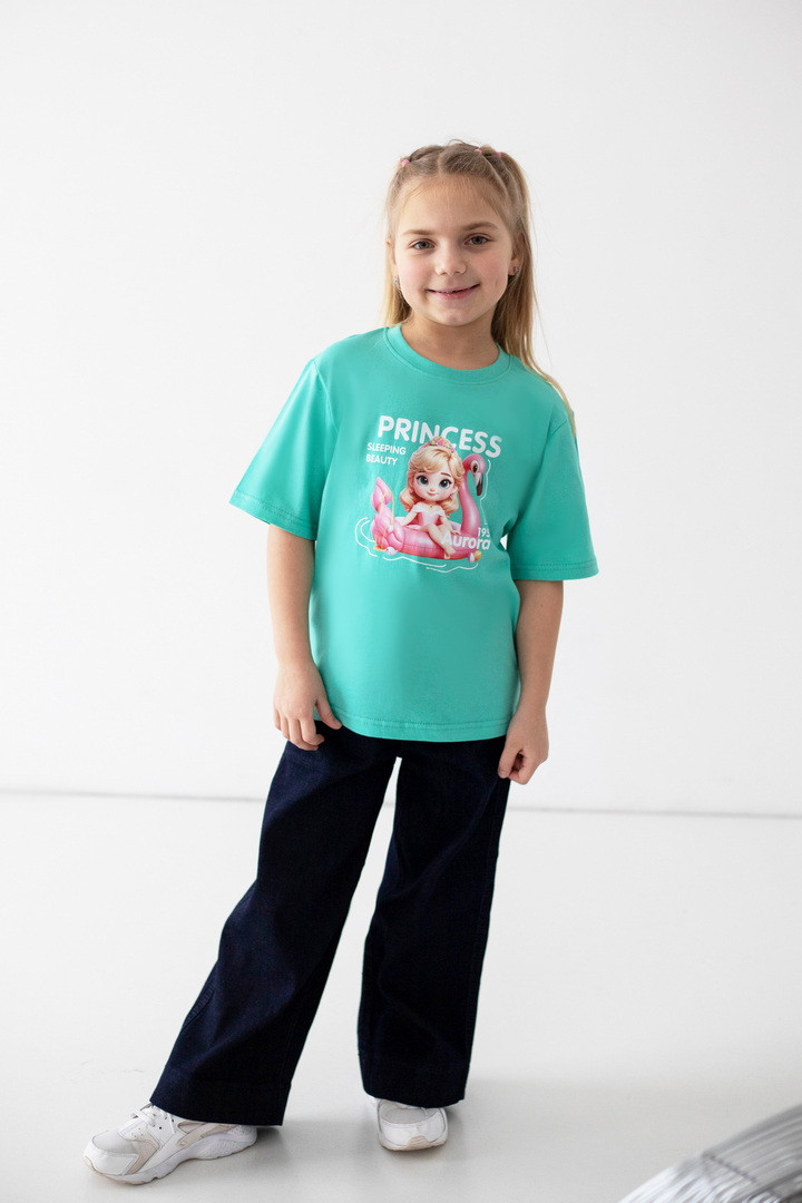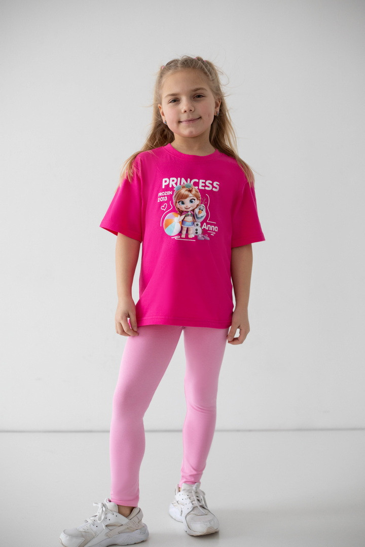 Яскрава та стильна футболка для дівчаток, яка одразу підкорює з першого погляду. Модель виготовлена з куліру — легкого, дихаючого та приємного до тіла трикотажу, ідеального у теплу пору року. Футболка має вільний, комфортний крій і чудово підходить як для прогулянок, так і для садочка чи школи. Насичений, гарний принт із улюбленими принцесами робить образ по-справжньому чарівним та казковим. Футболка стане улюбленою річчю в гардеробі дівчинки — зручною, практичною та водночас особливою. Вона дарує комфорт протягом усього дня, виглядає стильно та підкреслює індивідуальність.
