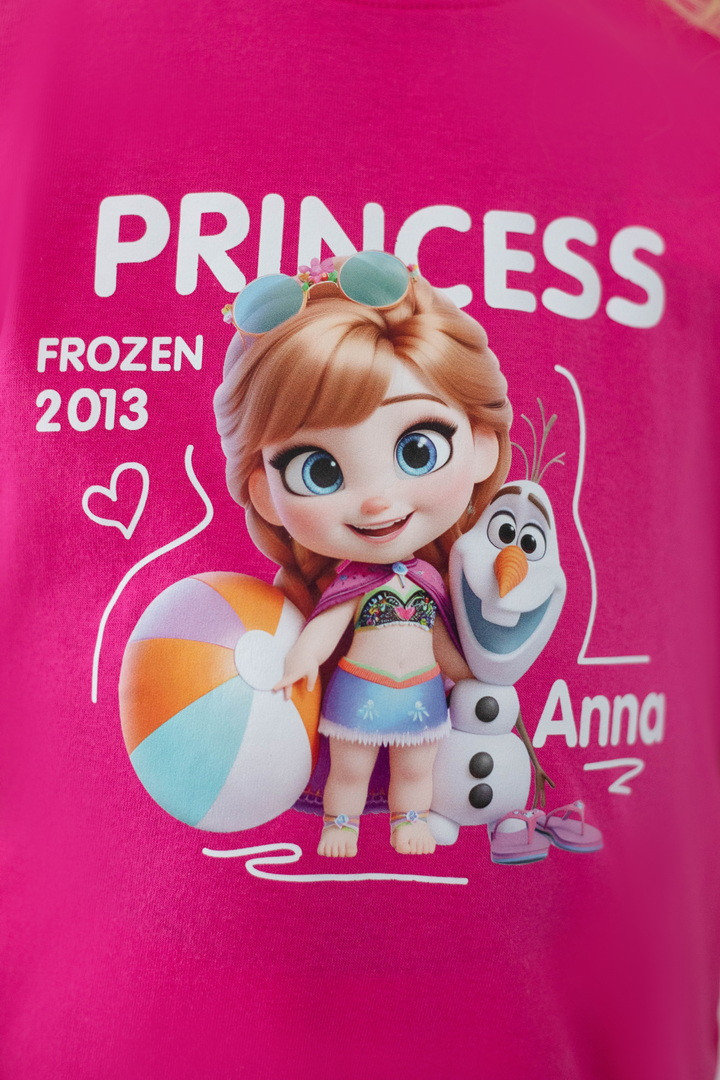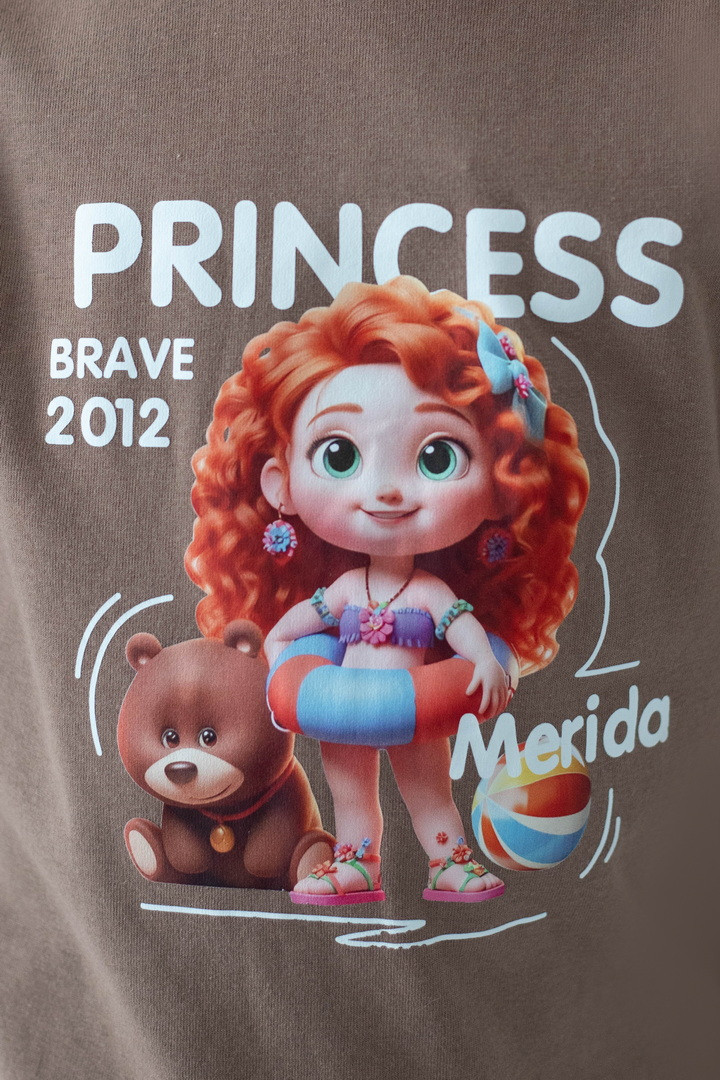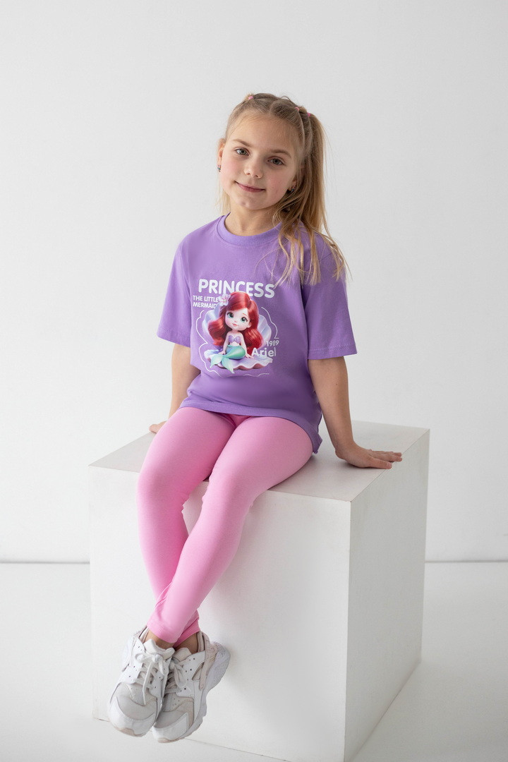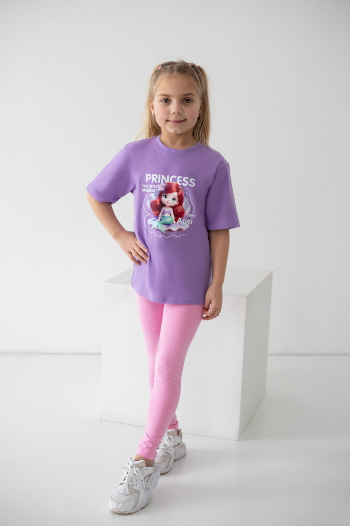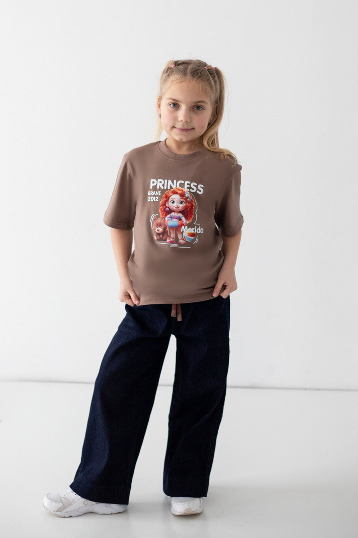 Яскрава та стильна футболка для дівчаток, яка одразу підкорює з першого погляду. Модель виготовлена з куліру — легкого, дихаючого та приємного до тіла трикотажу, ідеального у теплу пору року. Футболка має вільний, комфортний крій і чудово підходить як для прогулянок, так і для садочка чи школи. Насичений, гарний принт із улюбленими принцесами робить образ по-справжньому чарівним та казковим. Футболка стане улюбленою річчю в гардеробі дівчинки — зручною, практичною та водночас особливою. Вона дарує комфорт протягом усього дня, виглядає стильно та підкреслює індивідуальність.