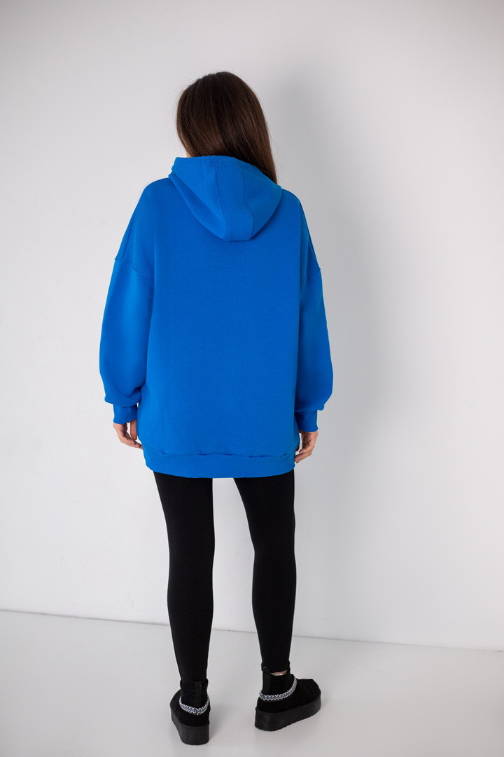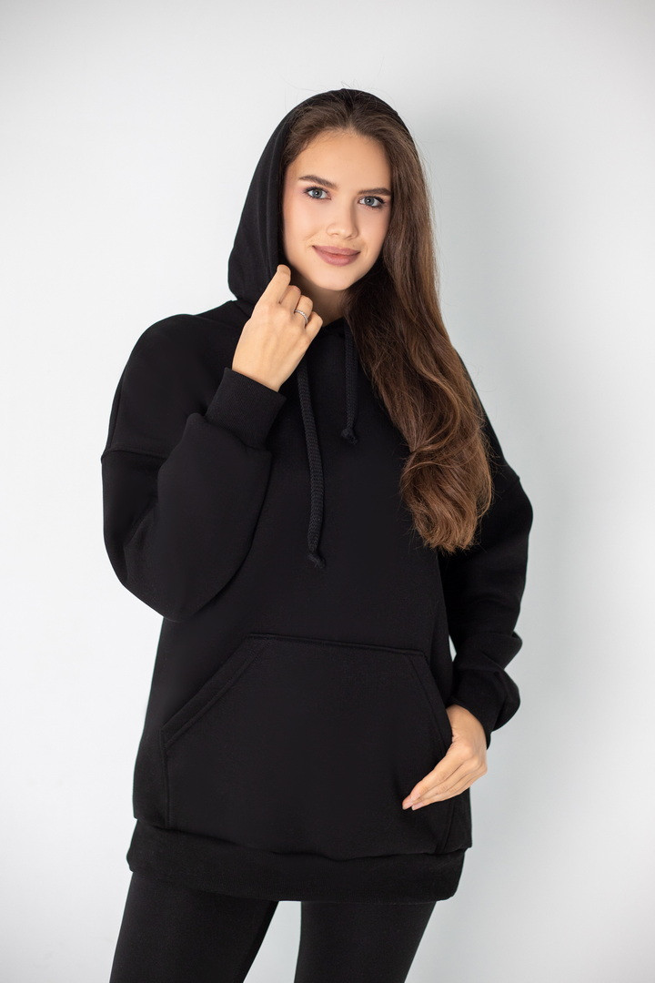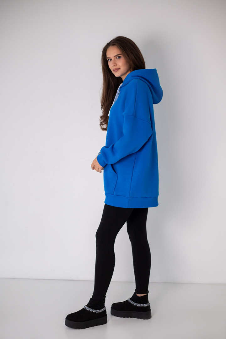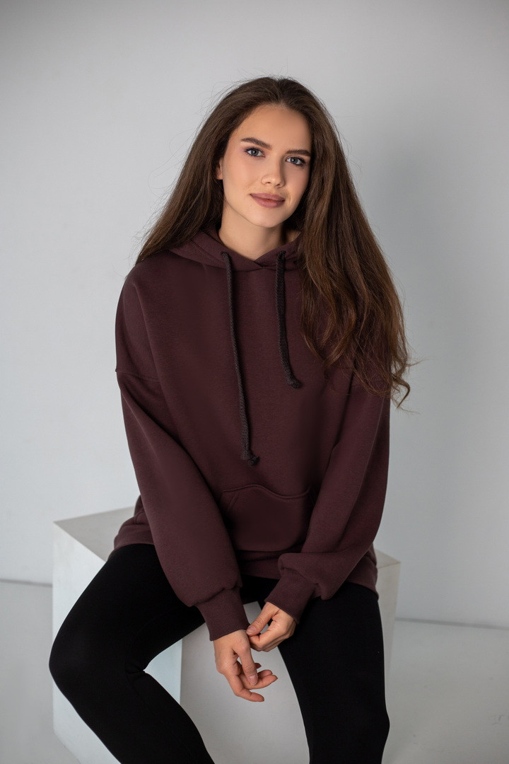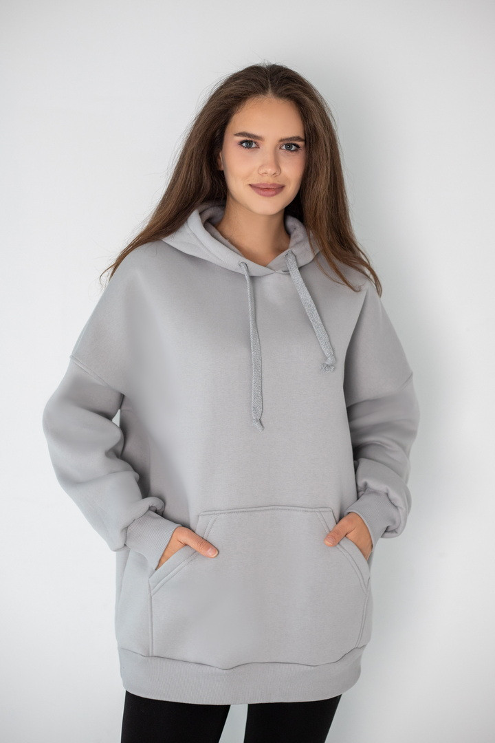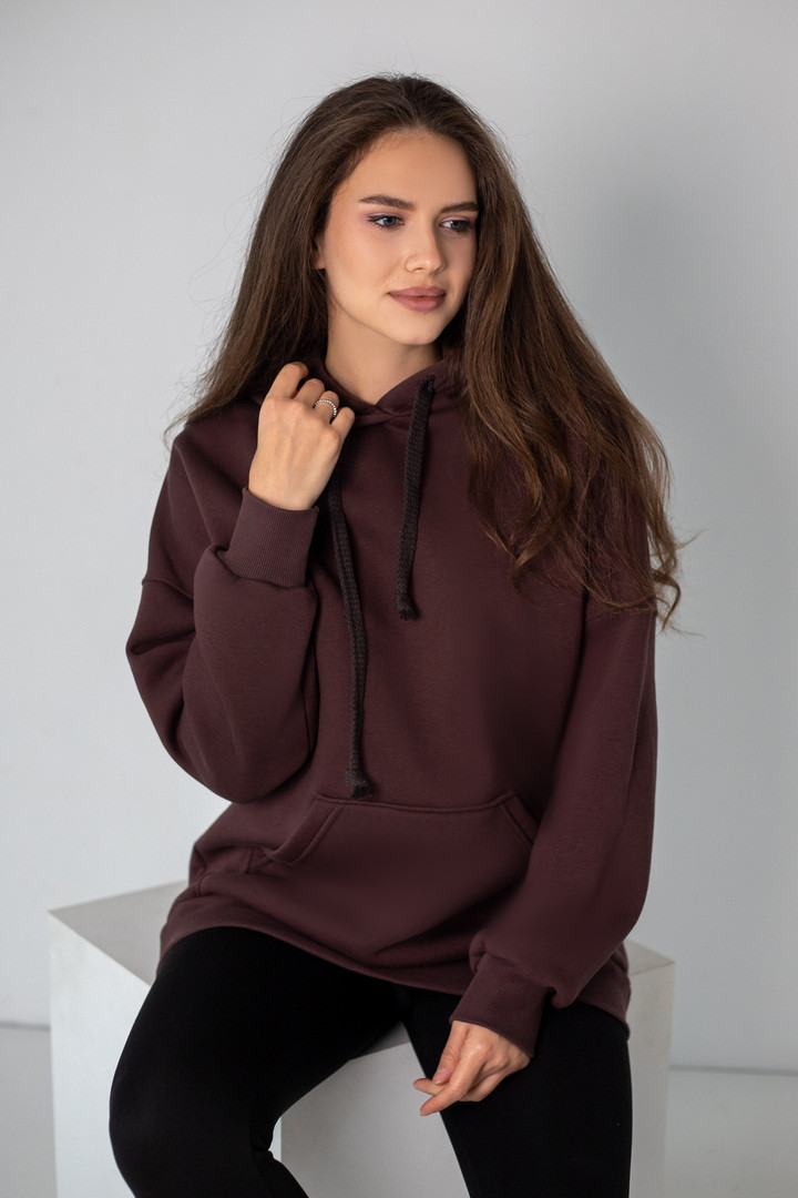 Худі для жінок у стилі "Оversize" виготовлений з полотна "Футер тринитковий з начосом". М'який трикотаж забезпечує приємні тактильні відчуття та добре тримає форму. Худі - це один із найпопулярніших видів толстовок, головні переваги - це вільний крій, капюшон, кишені на кшталт "кенгуру". Така річ є універсальною, подарує комфорт та зручність у використанні. Ідеально поєднується з джинсами, спортивними штанами чи легінсами, створюючи сучасний повсякденний образ.