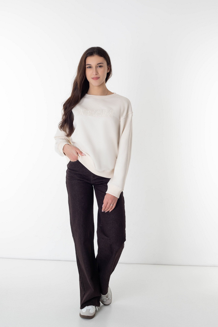 Жіночий світшот із тринитки петлі пеньє — це ідеальне поєднання якості та сучасного стилю. Натуральна бавовняна основа з пеньє-нитки вирізняється підвищеною м’якістю та бездоганною гладкістю полотна. Світшот має продуманий крій, який красиво сідає по фігурі і дарує відчуття повного комфорту. Манжети та низ виробу з еластичної резинки зберігають форму. Мінімалістичний дизайн робить модель універсальною та практичною. Він створений для жінок, які цінують якість, стиль та комфорт. Одягай, відчувай і будь впевненою в собі щодня.