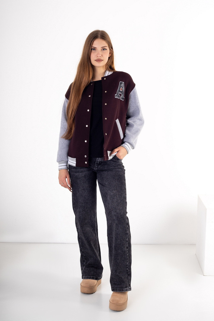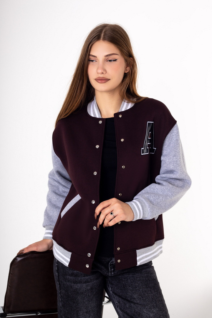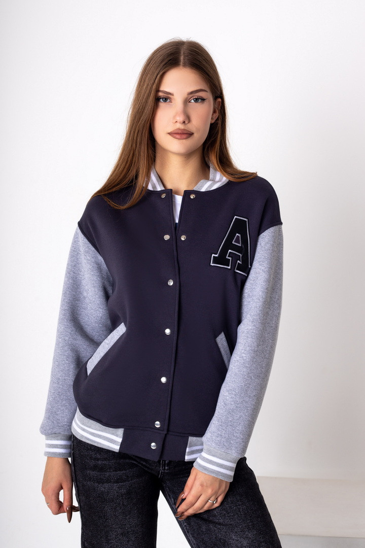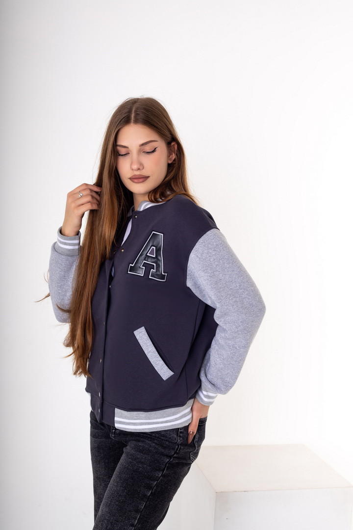 Базовий стильний бомбер на кнопках для жінок із триниткового футера начосом. Модель вільного крою з довгими рукавами на манжетах, кишенями та манжетом по низу виробу, спереду знаходиться вишивка. Дана модель - обов'язковий елемент гардеробу, може комплектуватися зі спортивними штанами для активного відпочинку, занять спортом, також можна носити з джинсами, лосинами. Полотно гарної якості, не линяє, не скочується.