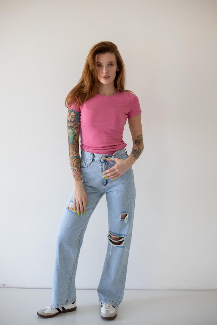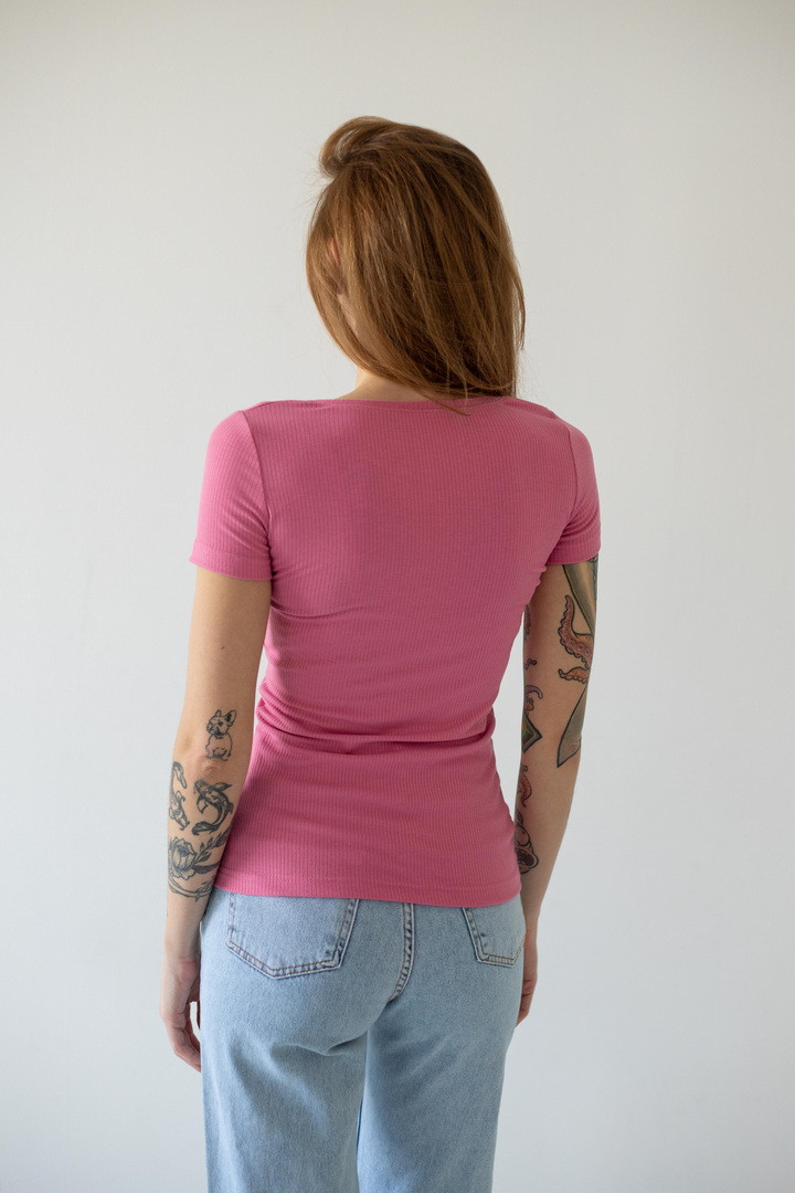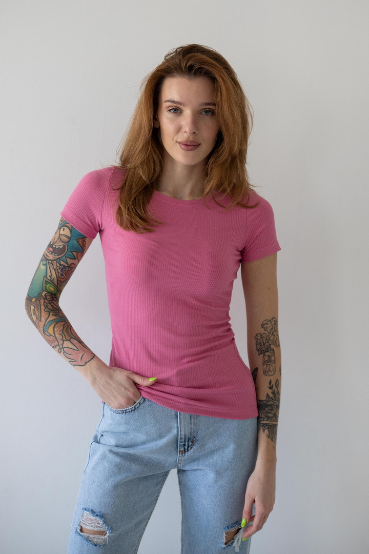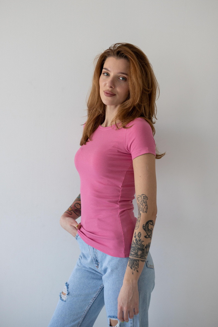 Є речі, які просто одяг, а є ті, що створюють настрій. Ця футболка — саме така. Вона ніжно прилягає до тіла, підкреслює силует і виглядає настільки стильно, що ти з легкістю збереш ідеальний образ буквально за хвилину. М’яка полівіскоза дарує відчуття комфорту, яке хочеться відчувати щодня. Тканина приємно охолоджує у теплу погоду та дозволяє шкірі дихати, а легка еластичність робить посадку просто бездоганною. Рубчаста текстура додає глибини та “дорогого” вигляду навіть базовій моделі. Лаконічний дизайн — це її суперсила. Вона легко адаптується під твій стиль: сьогодні — з джинсами для effortless casual, завтра — зі спідницею для більш жіночного образу, а післязавтра — під жакет для стильного міського луку.