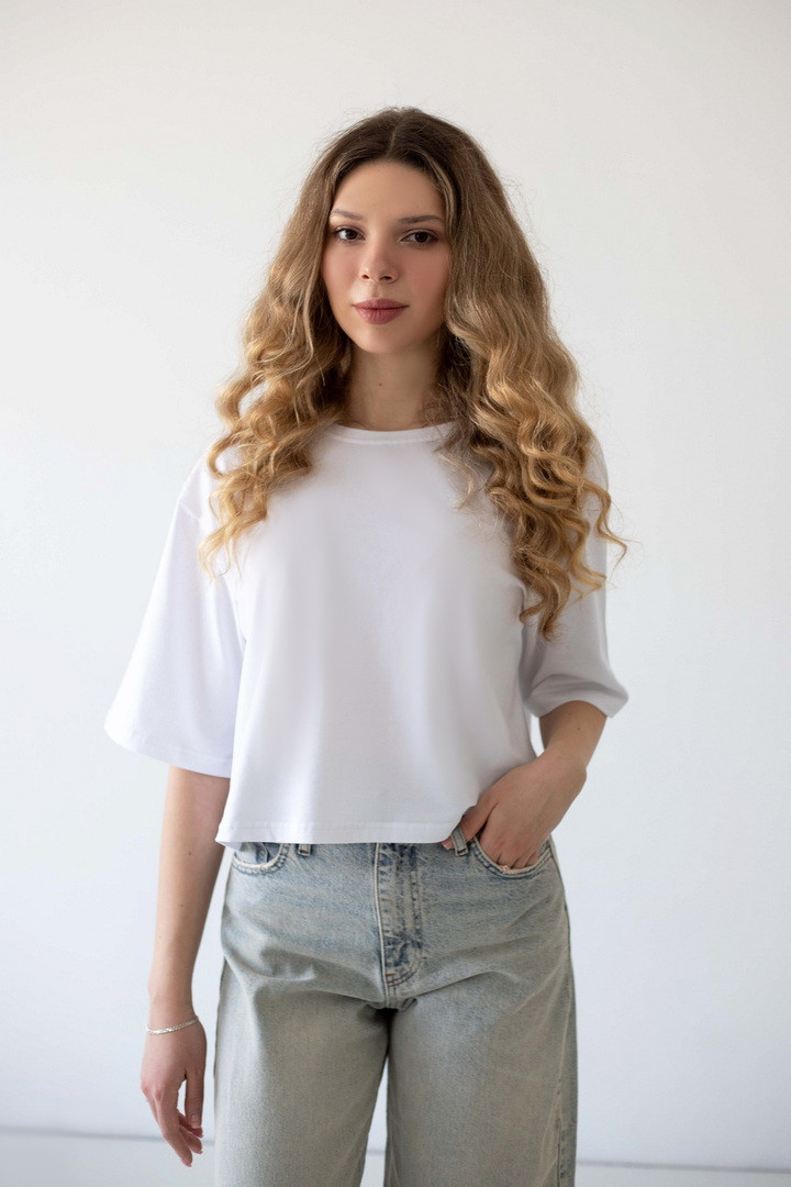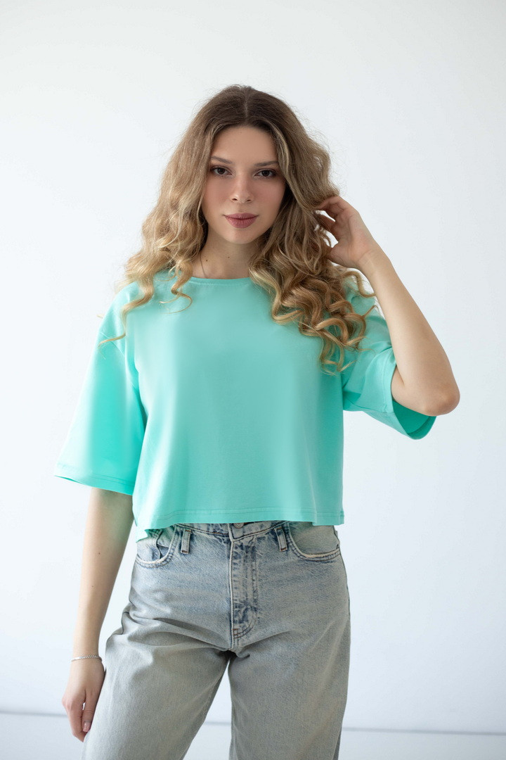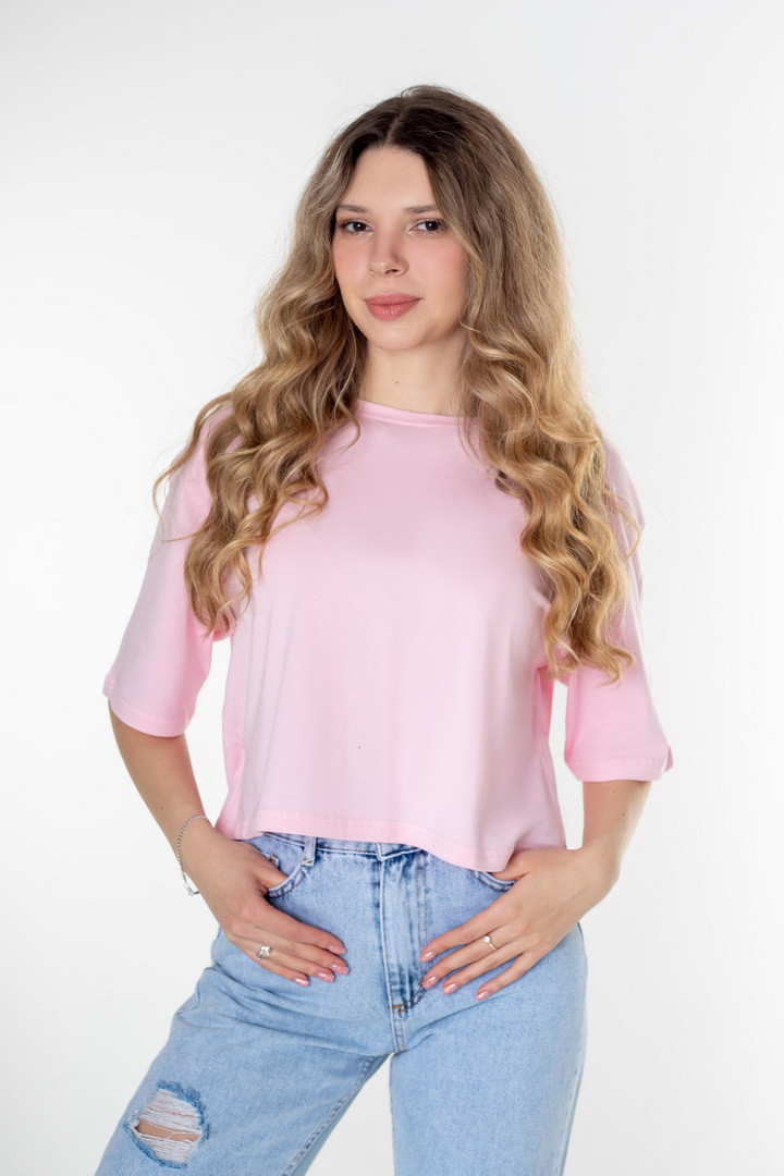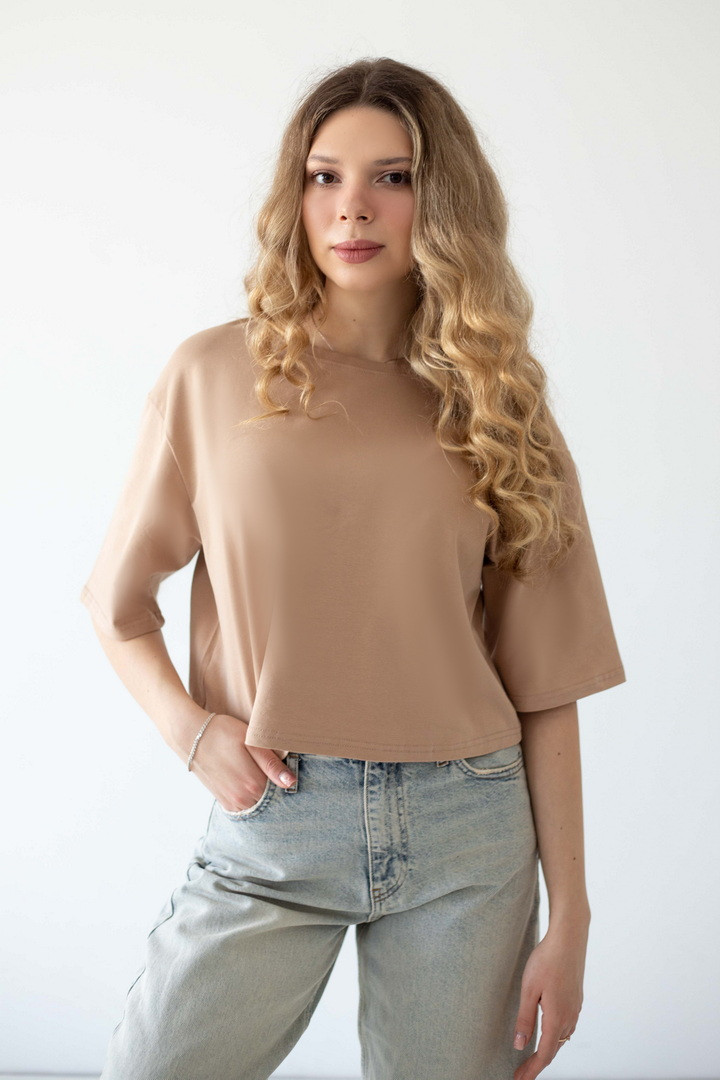 Ця жіноча футболка зі стрейч-куліру пеньє — про відчуття легкості. Ніжна, шовковиста на дотик тканина м’яко огортає тіло, створюючи відчуття абсолютного комфорту протягом усього дня. Завдяки еластичності матеріалу, модель делікатно підлаштовується під силует. Вільний, сучасний крій із плавною лінією плеча формує розслаблений, трендовий силует, який виглядає стильно. Лаконічний дизайн відкриває безліч можливостей для стилізації: вона легко поєднується з джинсами, шортами чи спідницями, створюючи як базові повсякденні образи, так і більш виразні аутфіти. Ця футболка — твій щоденний комфорт, впевненість у собі та стиль.