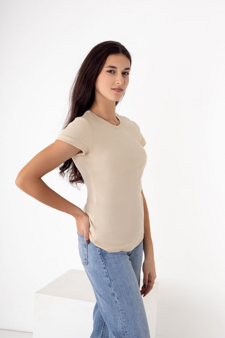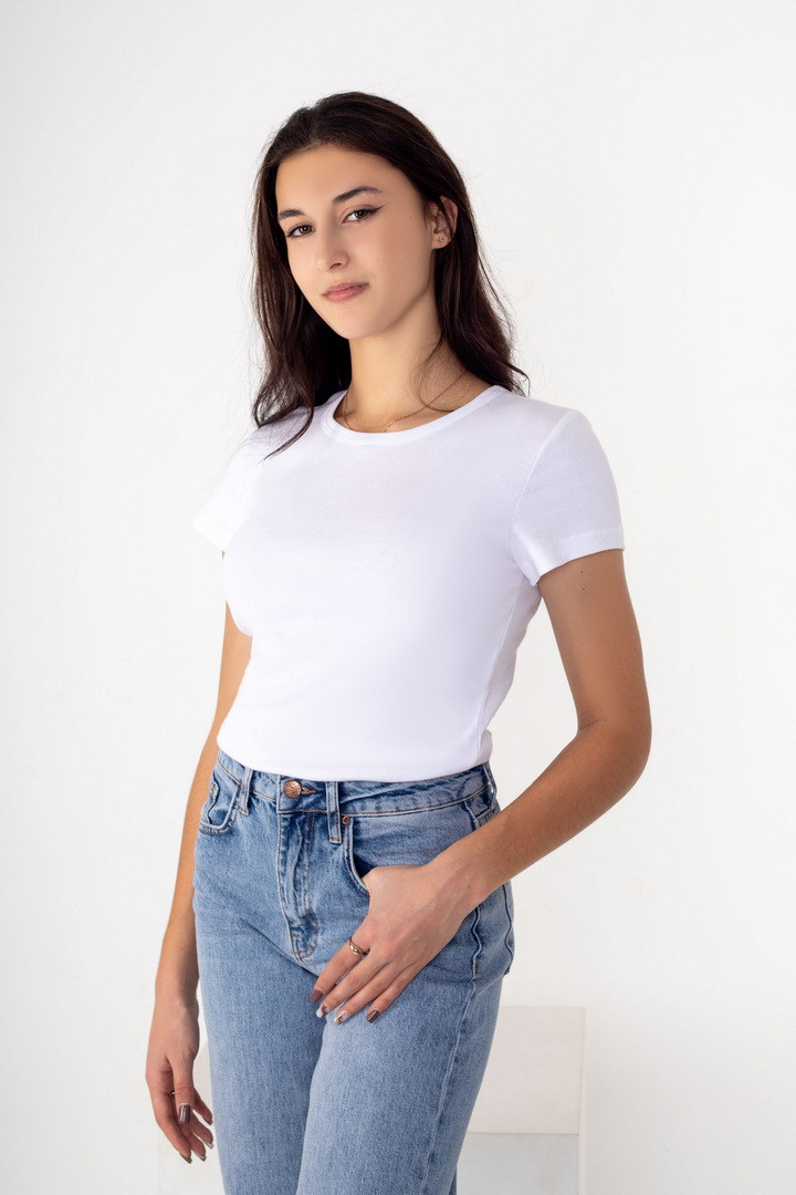 Жіноча футболка з рібани — це ідеальне поєднання комфорту, еластичності та стильного вигляду. Виготовлена з м’якого трикотажного полотна рібана, футболка приємна до тіла, добре пропускає повітря та забезпечує комфорт протягом усього дня. Завдяки еластичній структурі матеріалу виріб чудово тягнеться, зберігає форму після прання та красиво підкреслює фігуру. Футболка має універсальний крій, який легко поєднується з джинсами, спідницями, шортами або спортивними штанами. Рібана відома своєю зносостійкістю та практичністю, тому футболка довго зберігає охайний вигляд навіть при частому використанні. Це відмінний вибір для жінок, які цінують комфорт, якість та універсальний стиль.