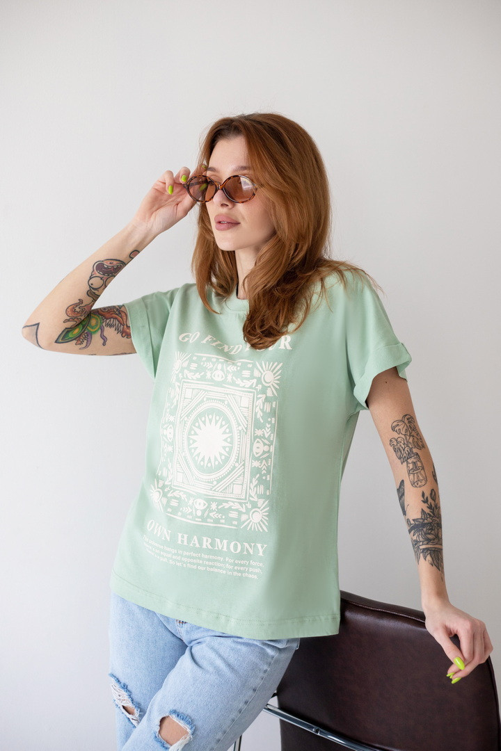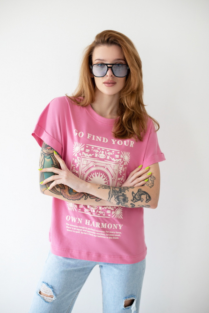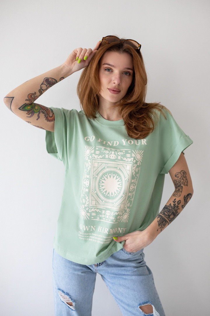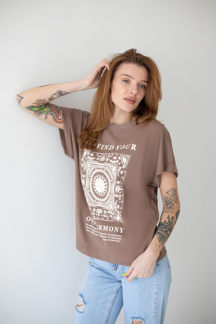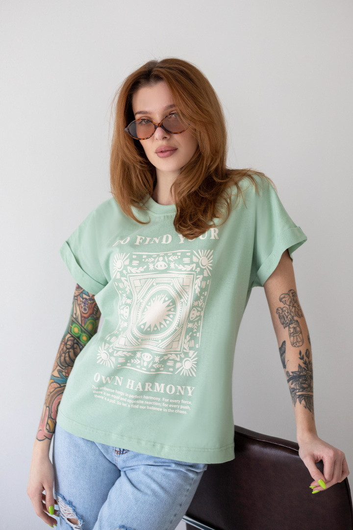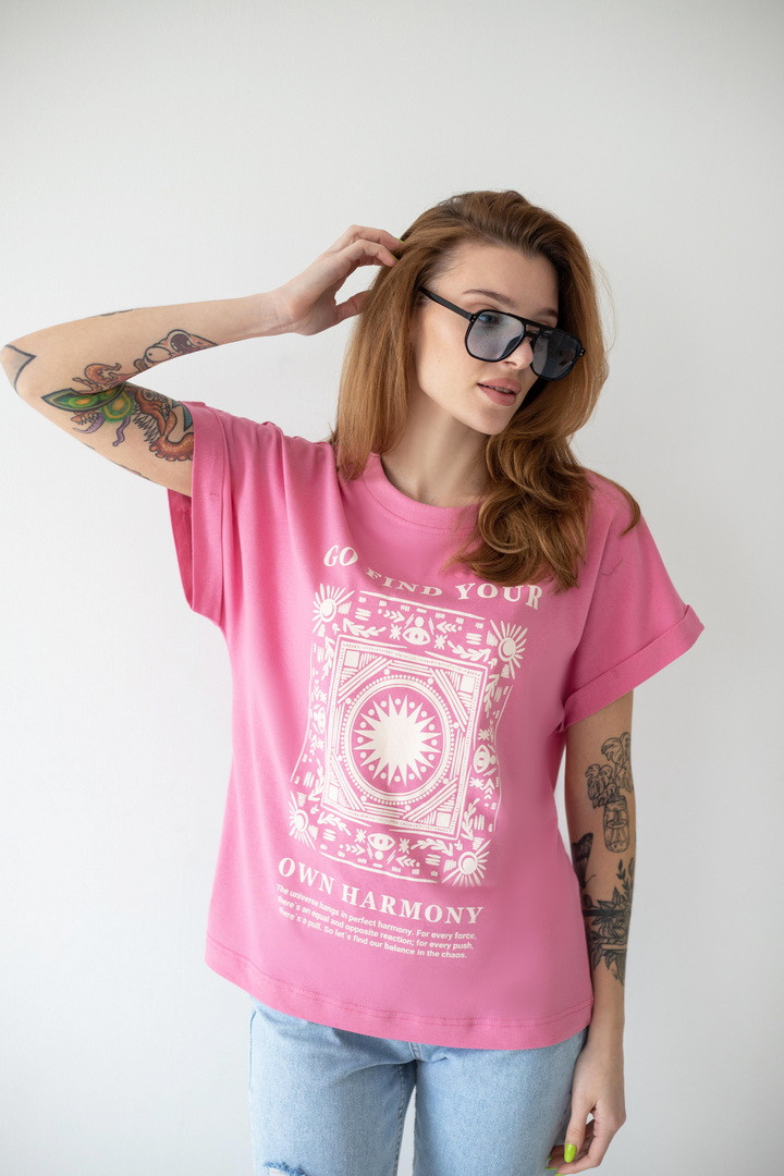 Жіноча футболка з куліру — це ідеальне поєднання стилю, комфорту та внутрішньої гармонії. Вона створена для тих, хто цінує легкість у кожному дотику та сучасний дизайн, що підкреслює індивідуальність. М’яка та приємна до тіла тканина кулір, дарує відчуття ніжності навіть у найспекотніші дні. Це саме той варіант, який хочеться носити щодня — вдома, на прогулянці чи під час активного відпочинку. Вільний крій (oversize) додає образу легкості та невимушеності, підкреслюючи природну красу. Спущена лінія плеча створює трендовий силует, а універсальна довжина дозволяє поєднувати футболку як із джинсами, так і зі шортами чи спідницями. Особливу увагу привертає стильний принт із глибоким змістом — він не просто прикрашає, а передає настрій гармонії, балансу та внутрішньої сили. Така футболка — це не лише базовий елемент гардеробу, а справжній акцент вашого образу. Це вибір для тих, хто хоче виглядати сучасно, почуватися комфортно та нести свій стиль із легкістю та впевненістю.
