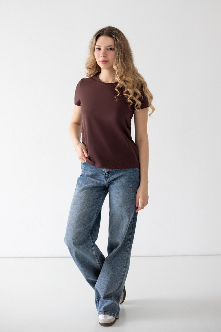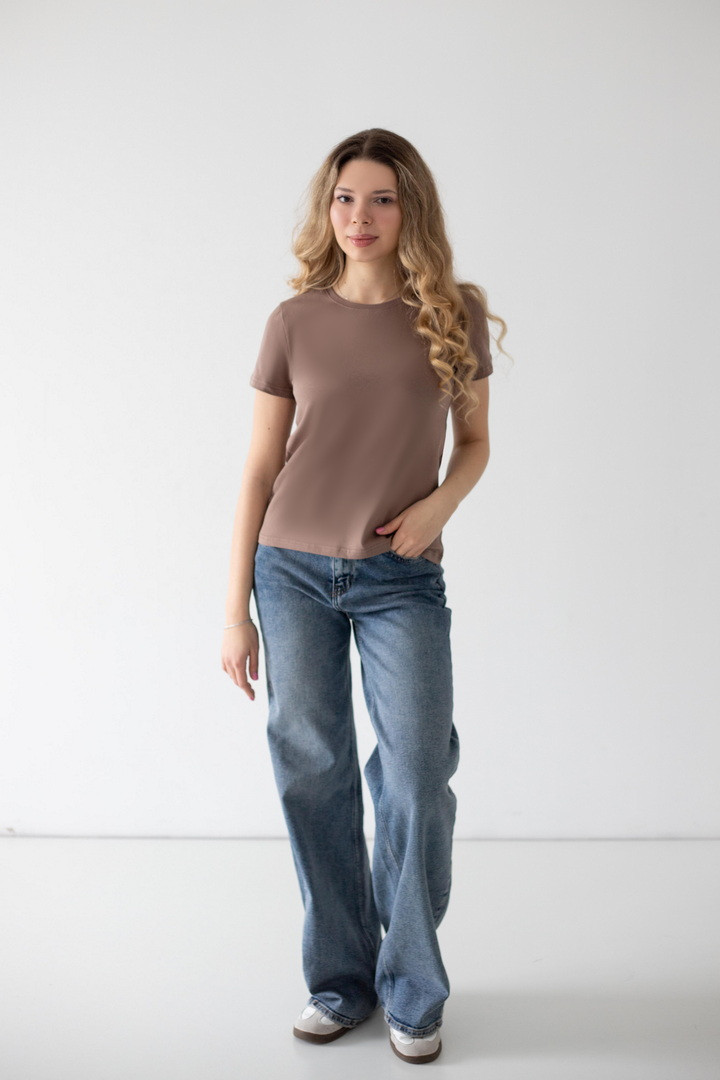 Ця футболка — про комфорт, який відчувається з першого дотику, і стиль, який не потребує зайвих зусиль. Вона створена для жінок, які цінують простоту з характером: лаконічний крій, ідеальна посадка та тканина, що ніжно огортає тіло. Виконана зі стрейч-куліру, вона дарує відчуття легкості навіть у найспекотніші дні. Матеріал м’який, еластичний і приємний до шкіри та чудово пропускає повітря. Саме тому ця футболка стане незамінною у щоденному гардеробі — вдома, на прогулянці чи в активному ритмі міста. Універсальний фасон із округлим вирізом і акуратною посадкою підкреслює природну красу. Вона легко комбінується з джинсами, шортами, спідницями чи жакетами — щоразу створюючи новий настрій: від розслабленого casual до стриманої елегантності. Це базова річ, яка працює на вас щодня — дарує впевненість, комфорт і виглядає бездоганно в будь-якій ситуації. Саме та футболка, яку хочеться носити знову і знову.