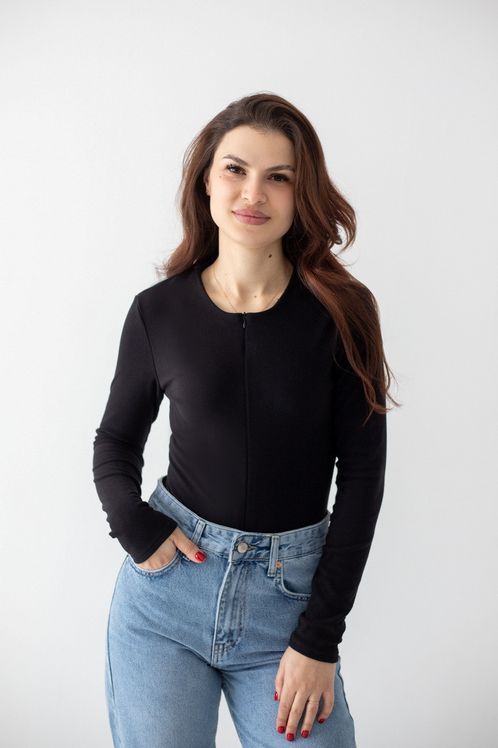 Параметри моделі: обхват грудей 83, талія 71, стегна 100, зріст 170 см.Розмір одягу 42-44.