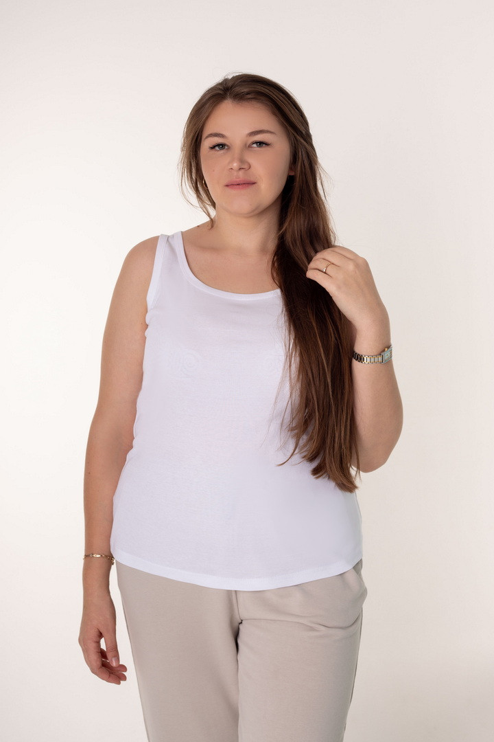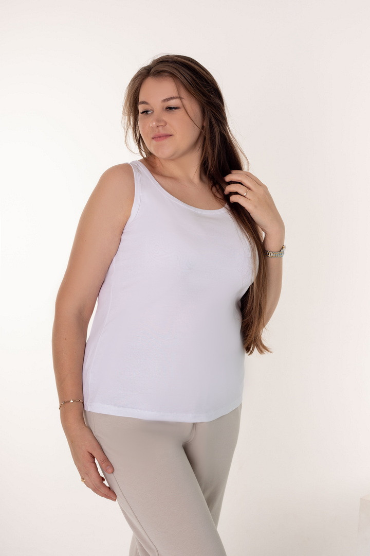 Жіноча майка — це універсальний елемент гардероба, який поєднує комфорт, еластичність і стильний вигляд. Майка м’яка та неймовірно приємна до тіла, вона створена для тих днів, коли хочеться максимального комфорту зі стилем. Полотно рібана ніжно облягає фігуру, підкреслюючи силует, але водночас не тисне й не сковує рухів. Ця майка ідеально адаптується до вашого ритму життя: вдень — стильна основа для повсякденного образу з джинсами чи спідницею, а ввечері — затишний варіант для дому. Матеріал добре пропускає повітря, зберігає форму та вигляд. Майка з рібани — це маленька деталь, яка робить образ завершеним, а день — комфортнішим.
