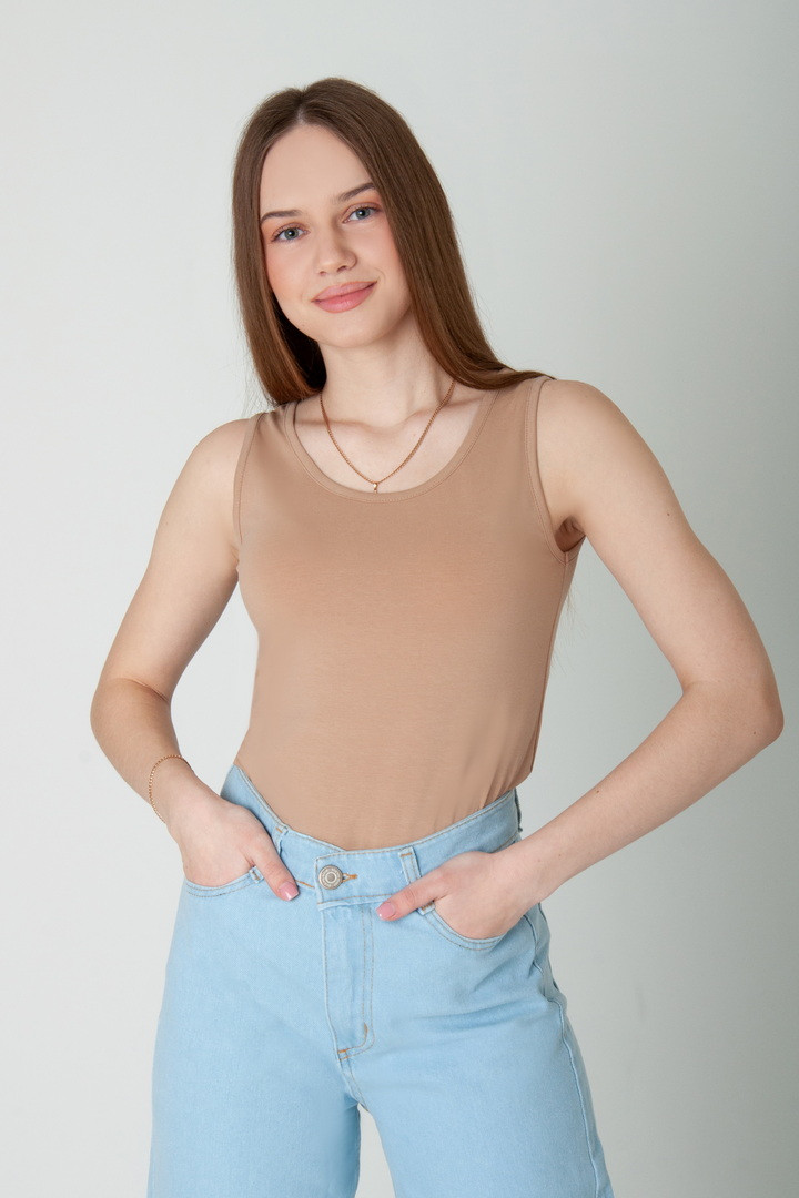 Жіночий топ зі стрейч-куліру пеньє — це не просто базова річ, а відчуття впевненості, комфорту та стилю. Неймовірно м’яка, шовковиста на дотик тканина ніжно огортає тіло, тягнеться саме настільки, щоб ідеально сісти по фігурі та підкреслити жіночні лінії без найменшого дискомфорту. Стрейч-кулір пеньє «дихає», не просвічується, зберігає форму та насиченість кольору. Топ виглядає бездоганно як самостійний акцент образу, так і як стильна база під піджак, сорочку чи кардиган. Продуманий крій, акуратні шви та еластичність тканини створюють ефект «другої шкіри» — топ не тисне та дарує абсолютну свободу. Це той самий топ, який хочеться носити щодня — зранку до вечора, у будь-який сезон.