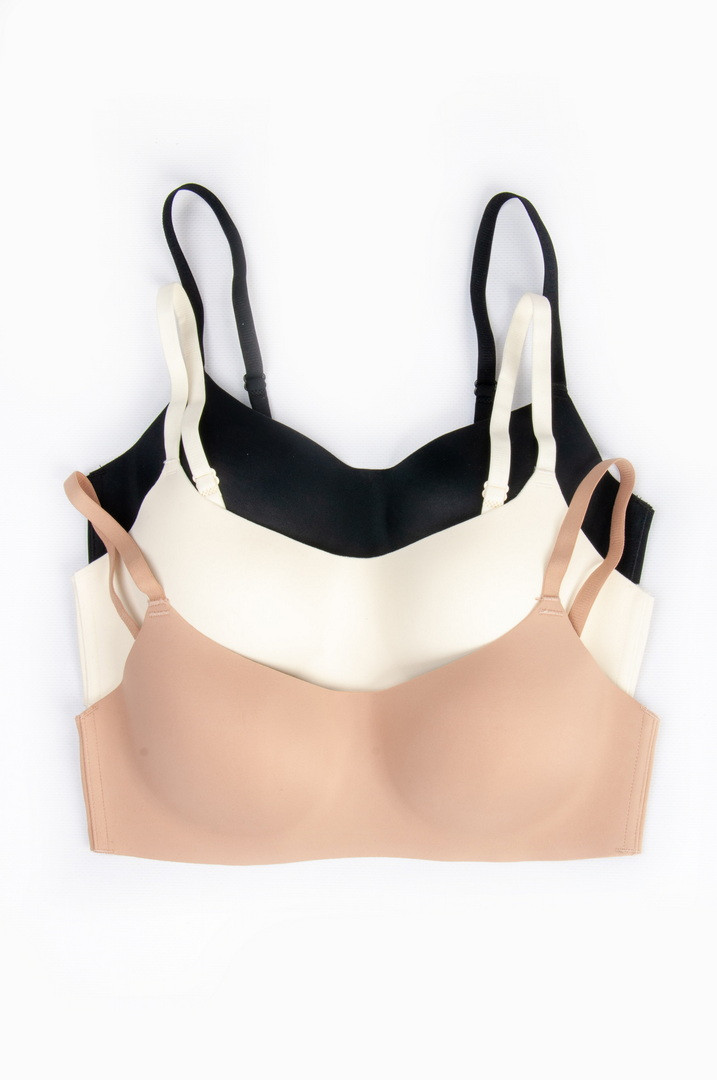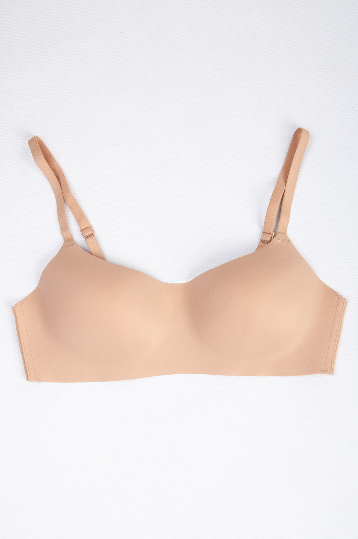 Безшовний бюстгальтер-бандо із формованими чашками із тонкого поролону, виконаний без кісточок для максимального комфорту. Знімні бретелі тільки ззаду, з регулюванням по довжині, що дозволяє підлаштувати посадку під індивідуальні параметри. Легкий, м'який та еластичний, він залишається непомітним під одягом та ідеально підходить для повсякденного носіння. На спинці класична застібка 2 гачки/4 рівні подовження.