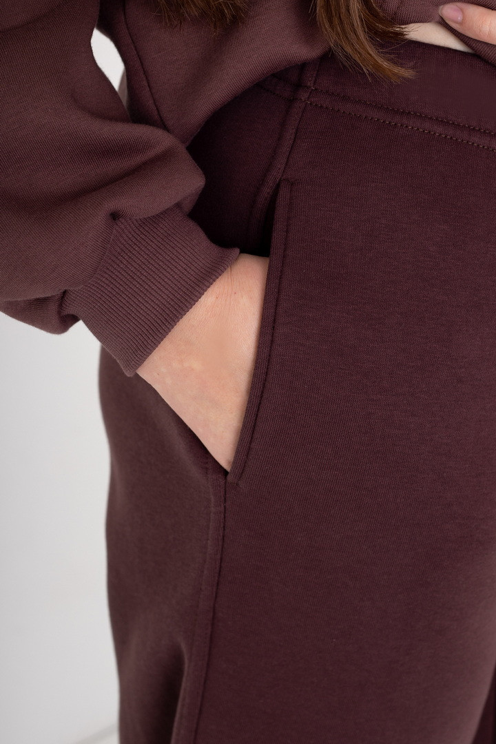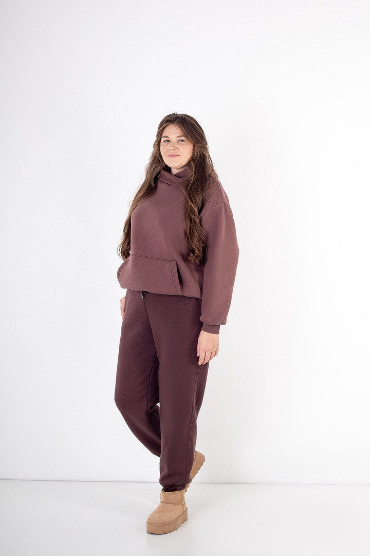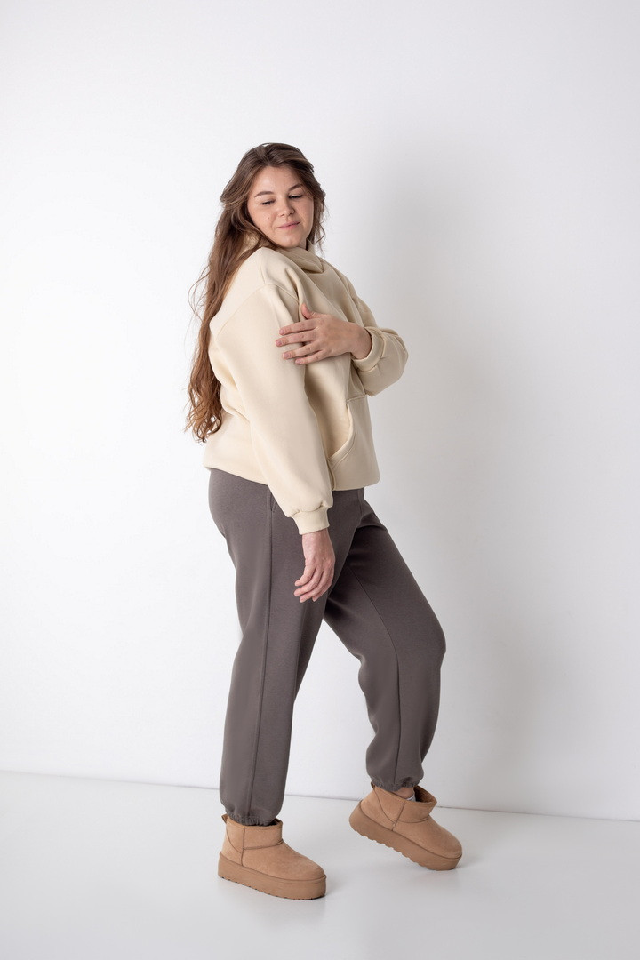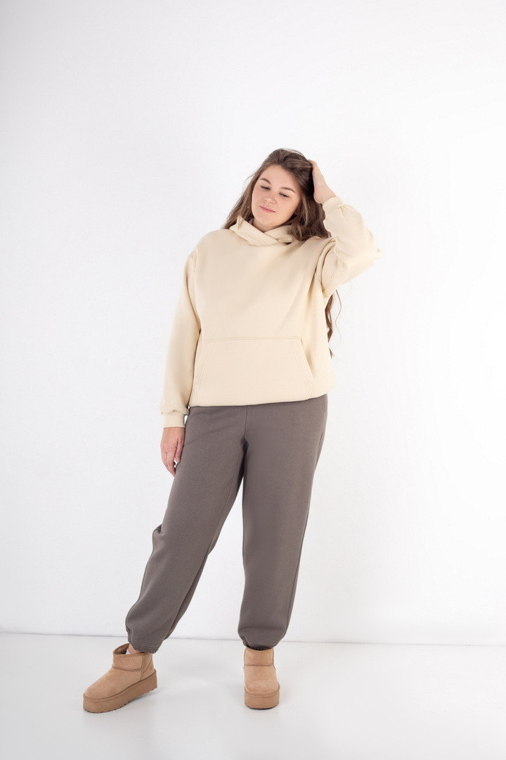 Ці жіночі штани із триниткового футера з начосом поєднують у собі комфорт, практичність і сучасний стиль. Модель має злегка вільний крій, що забезпечує легкість рухів та зручність упродовж усього дня. Еластичний пояс м’яко адаптується до фігури, а резинка на штанах створює комфорт при ходьбі. Матеріал приємний, теплий та м’який, завдяки чому штани чудово підходять як для прогулянок, так і для домашнього відпочинку чи тренувань легкого формату. Бічні кишені додають практичності. Стриманий дизайн робить цю модель універсальною — вона легко поєднується з худі, світшотами, створюючи стильні повсякденні образи. Ідеальний вибір для тих, хто обирає комфорт без зайвих деталей.