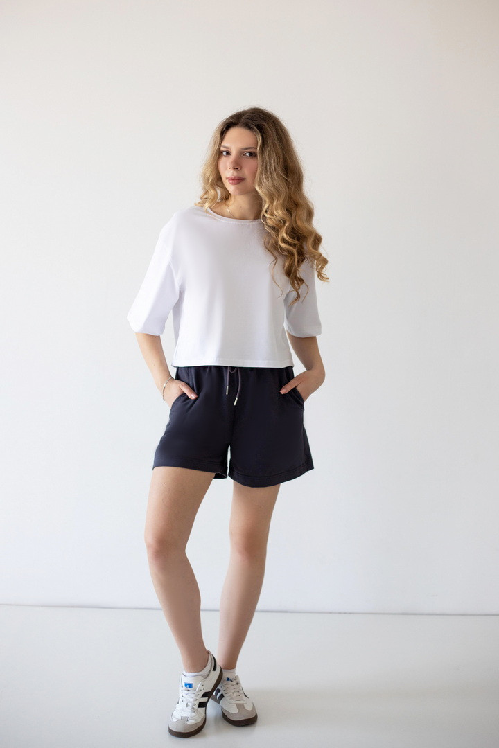 Лаконічні, трендові та неймовірно зручні — ці жіночі шорти із двониткового футера створені для сучасного ритму життя. Вони поєднують мінімалістичний дизайн, бездоганну посадку та комфорт, який хочеться відчувати щодня. Модель має вільний крій, що красиво сідає по фігурі та підкреслює легкість образу. Еластичний пояс із м’якою резинкою та регулювальним шнурком дозволяє ідеально підлаштувати посадку під себе. Акуратні бічні кишені додають практичності та завершеності дизайну. Двонитковий футер — це щільне, але дихаюче трикотажне полотно, яке чудово тримає форму, не просвічується та дарує приємні тактильні відчуття. Це саме та база, яка працює на ваш стиль — просто, сучасно та зі смаком.